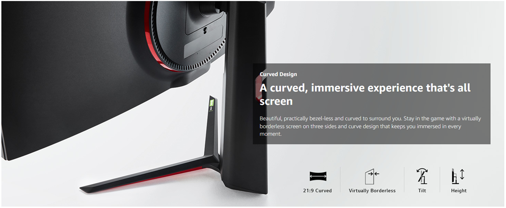 Immerse yourself in the action with this ultra-wide, WQHD Nano IPS curved monitor for gaming. See moving objects on the screen more clearly with a high overclocked* 160 Hz refresh rate and 1ms Motion Blur Reduction. AMD FreeSync Premium support virtually eliminates screen tearing and minimize stutter in high-resolution and fast-paced games for a fast and fluid gaming experience with supported video cards. Dynamic Action Sync reduces input lag and elevates your gameplay, allowing you to respond to your opponents quickly, while Black Stabilizer allows you to see them more clearly in the dark. Use the Crosshair feature for enhanced vision and precision in first-person shooters. Adjust the tilt, height, and pivot for the best ergonomics, ensuring that you have the most comfortable viewing position to play your games. *144Hz (O/C 160Hz) refresh rate for PC games only. Monitor will support console game's refresh rate when AMD FreeSync is turned off, but only 60 Hz refresh rate only when AMD FreeSync is turned on
