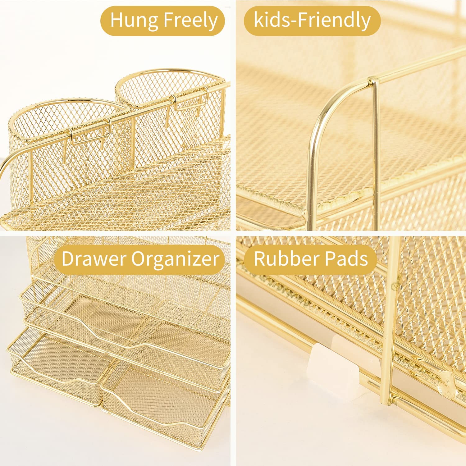 ? [Perfect Paper Organizer] Desk drawer organizer has open top storage space+2 hanging pen holders+3 different drawers. It is convenient for you to quickly identify and sort out desk accessories, letters, and greatly improve your work efficiency.