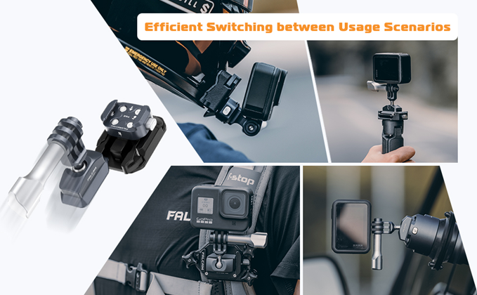 - Wide Compatibility: The Quick Release Kit is compatible with a wide range of action cameras, such as GoPro 10/11 and DJI OSMO Action 2/3 and those with a conventional GoPro interface. Note: Do not over-tighten the knob when no device is installed.