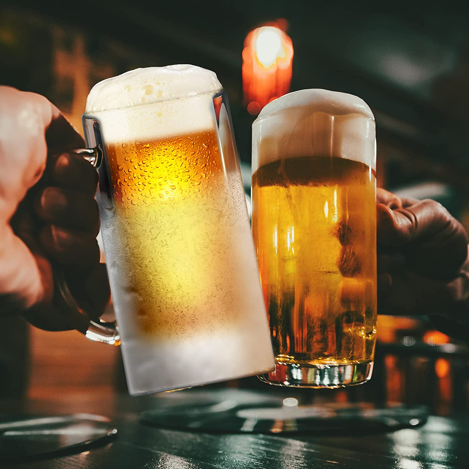 luxail Freezer Beer Mugs, Double Wall, Insulated Gel Plastic Pint Freezable Glasses, 16 oz, Clear 2 pack , Chiller Frosty Cup, Frozen Ice Freezer Mug, Freezer Cups