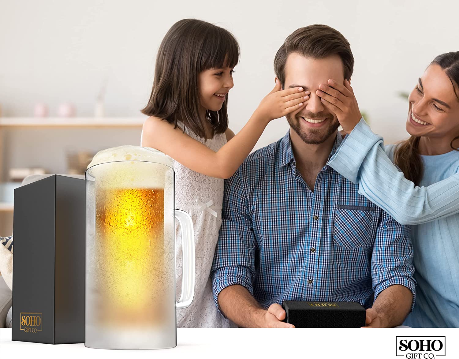 GALVANOX Freezer Glass Beer Mug with Handle, 1-Pint Freezable Beer Stein Chiller with Ice Wall Liquid-Gel (16oz) Insulated Frozen Drinking Cup Gift for the Man who already has everything (Gift Boxed)