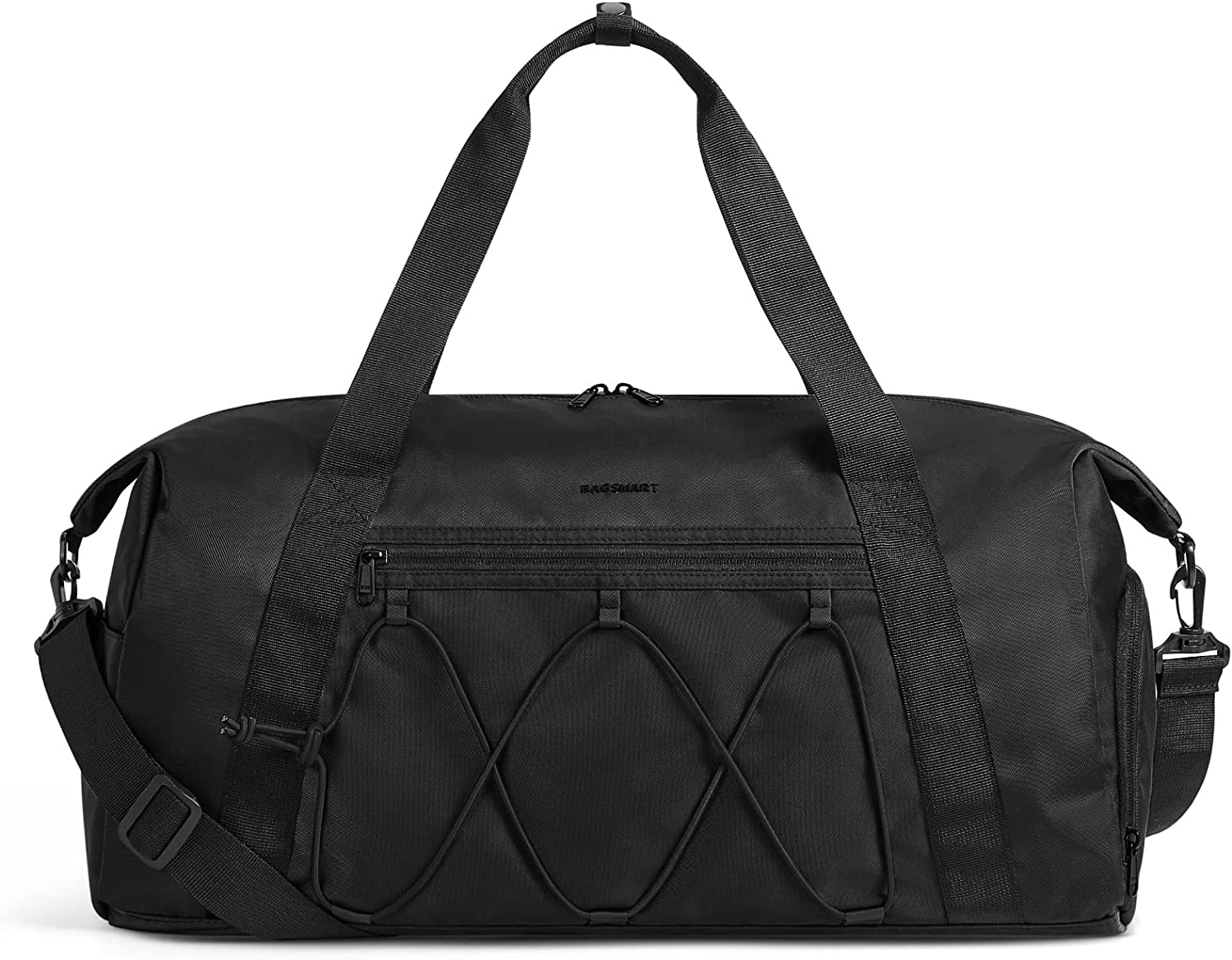 Gym Bag for Men Women, BAGSMART Sports Travel Duffel Bag With Shoe Compartment & Wet Pocket, Carry On Bag Weekender Overnight Bag, Water Resistant Sports Gym Tote Bags Swimming Yoga, Black