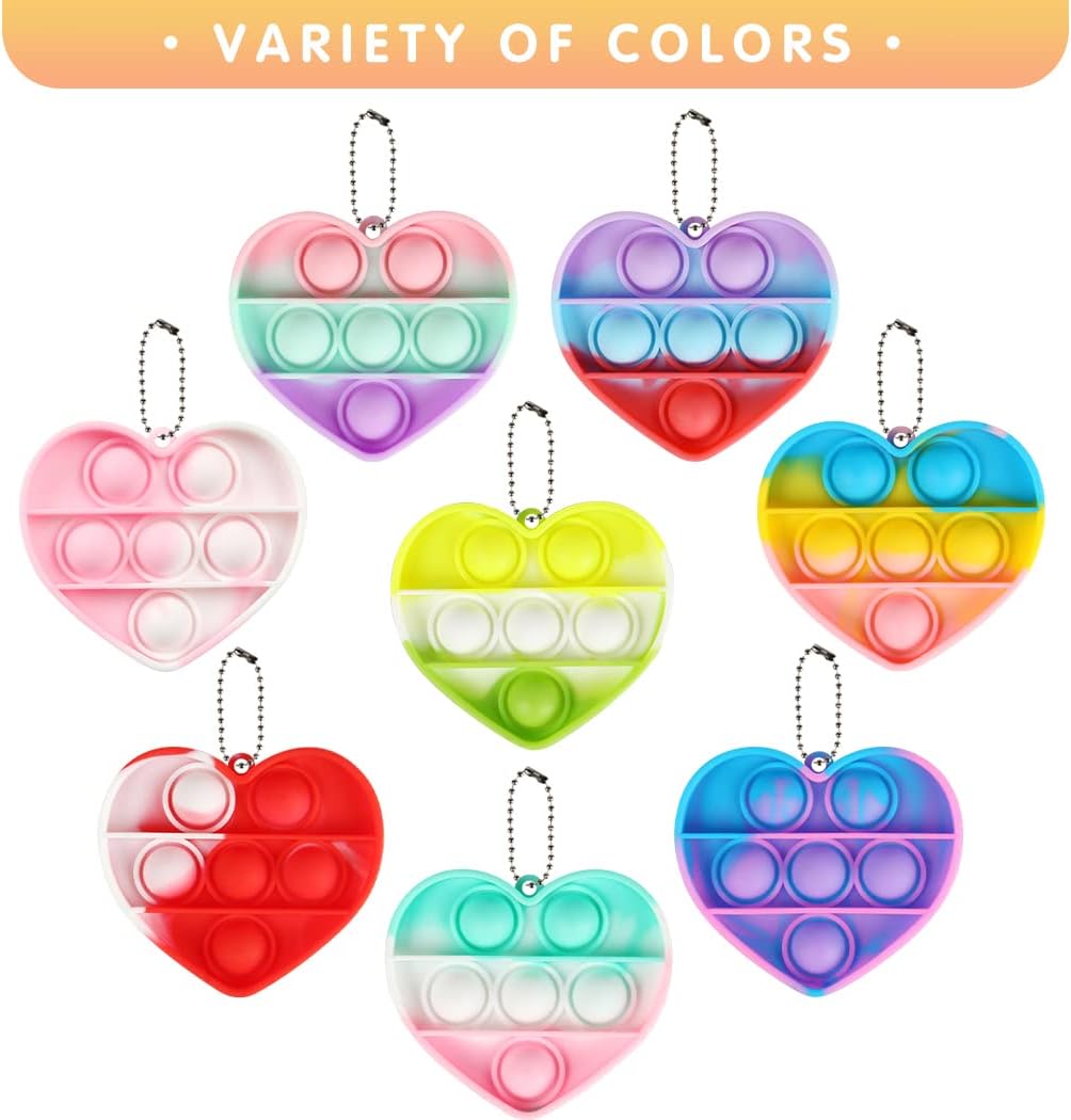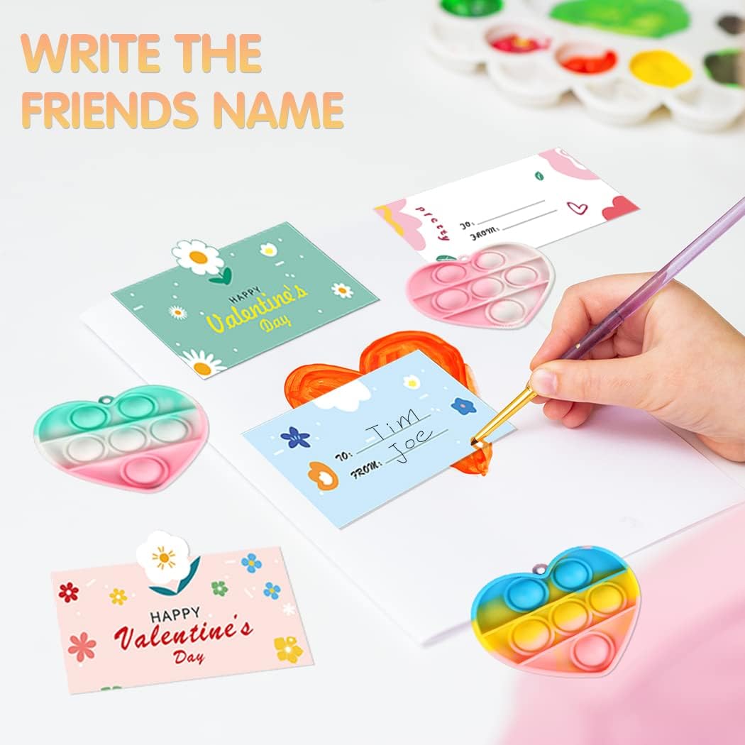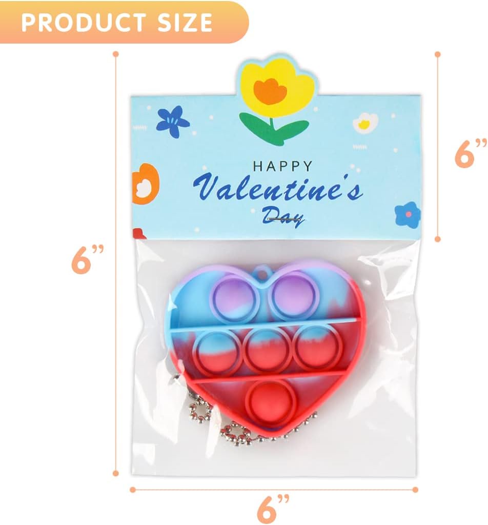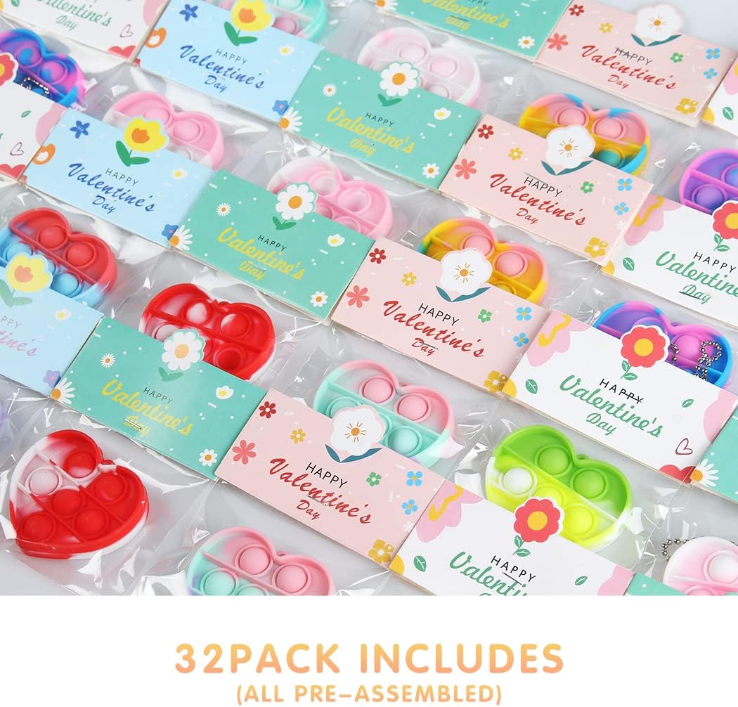 Valentines Day Gifts for Kids - 32 Valentines Cards with Mini Heart Pop Fidget Toys Bulk - Valentine Exchange for Girls Boys School Class Classroom Fidget Toys Party Favors