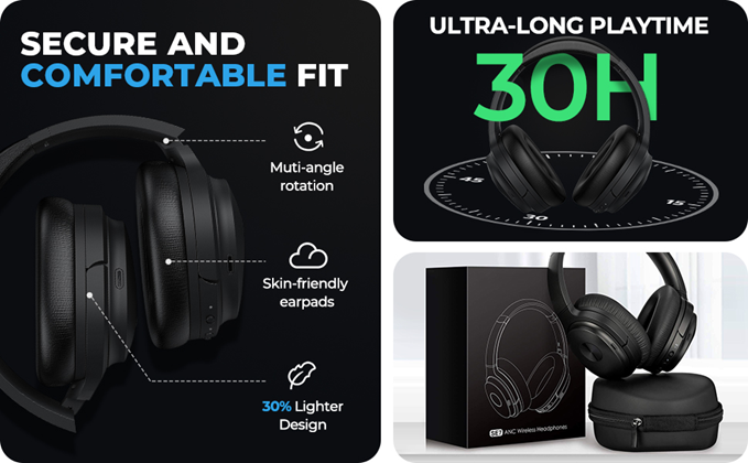 - Immerse Yourself in Music with No Distractions - Our SE7 Bluetooth headphones feature enhanced active noise technology, reducing up to 95% of low-frequency noises around you. Enjoy your music without any interruptions, even in noisy environments, and get fully immersed in your favorite tunes when owning SE7 active noise cancelling headphones.