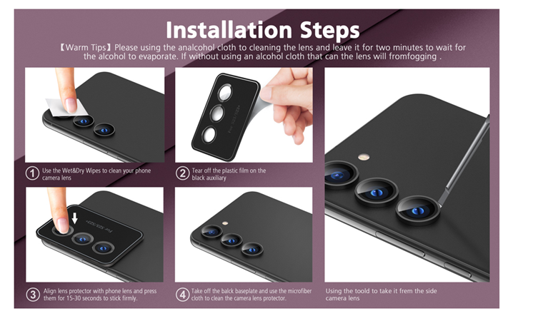 - 【Simple Bubble Free Installation】Our innovative simple installation artifact ensures that you can quickly, accurately and bubble free install the Lens Protector for Samsung Galaxy S23 or S23 Plus. Please clean the lens before installation.