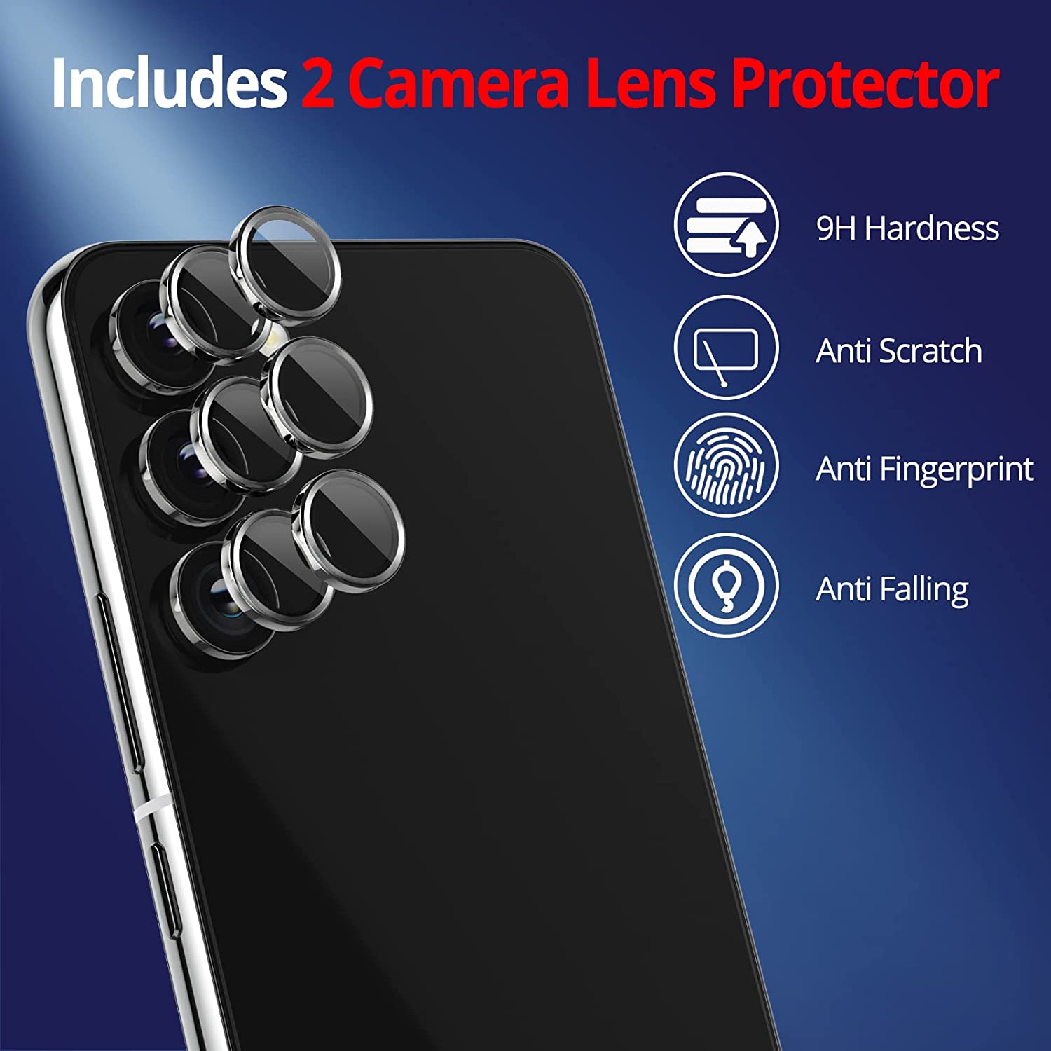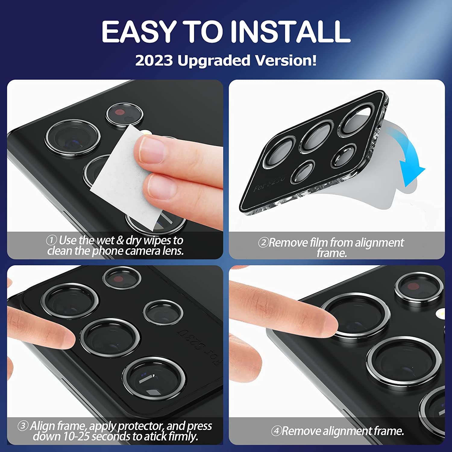 • 【Simple Bubble Free Installation】Our innovative simple installation artifact ensures that you can quickly, accurately and bubble free install the Lens Protector for Samsung Galaxy S23 or S23 Plus. Please clean the lens before installation.