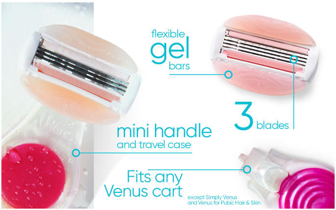 • COMPACT & PORTABLE: With a mini handle and travel case for on-the-go use. Easily fits into your purse or travel bag. Any Venus blade refill fits any Venus razor handle (except Simply Venus and Venus Pubic Hair Razor)