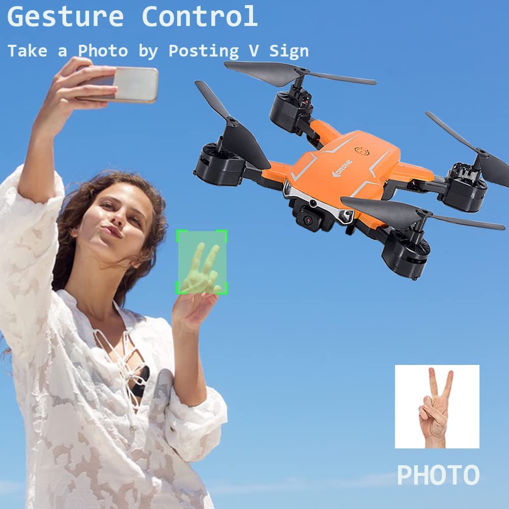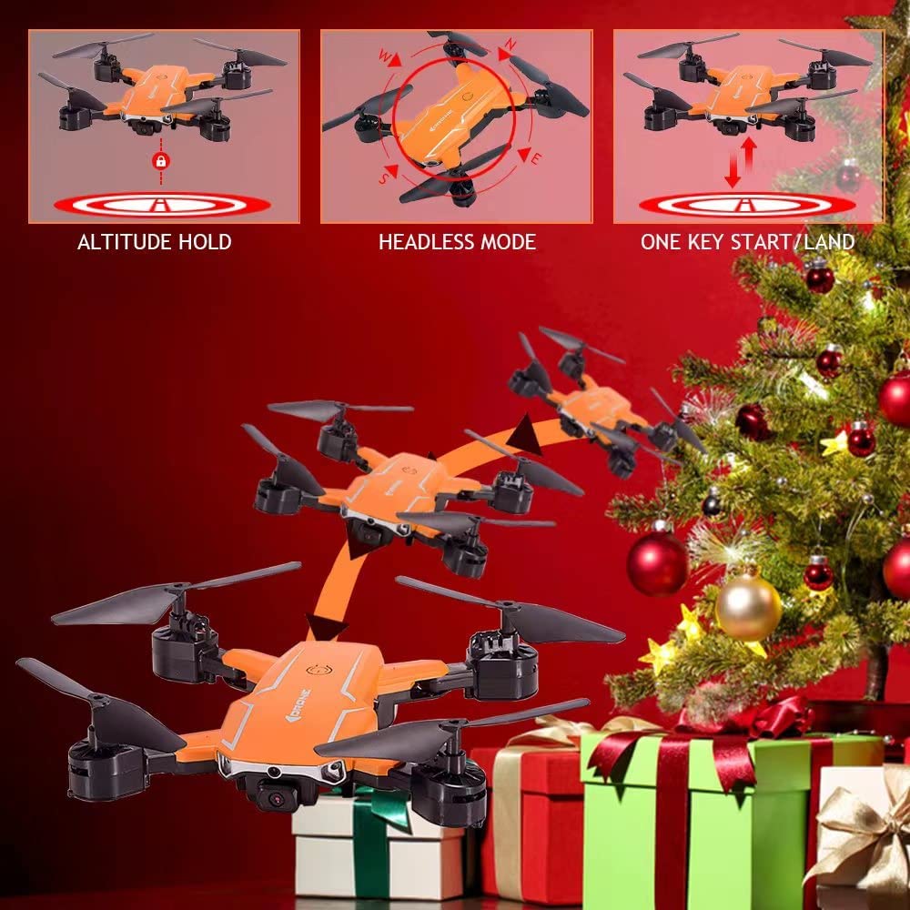 Drone with Camera for Adults 4k 1080P HD Mini RC Quadcopter WIFI FPV Whoop Drone for Kids Beginners Toy Gift Small Foldable Skyquad with Waypoint Fly, Auto Hover, Gesture Control, Fly 54 Mins(Orange)