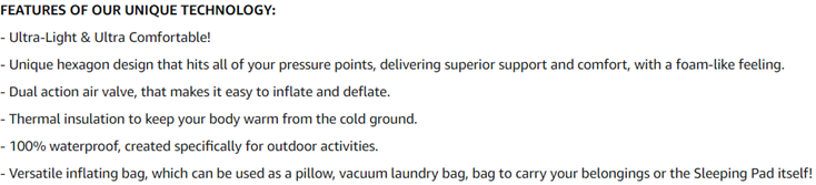 - Unique Everlasting Durability: It's the mat of all mats! The Sleeping Pad is made of durable, outdoor grade materials, such as 75D nylon. It includes thermal insulation, to keep your body warm from the cold winter ground. It is 100% waterproof, making it perfect for any outdoor activities. You can say goodbye to sore backs and other discomforts normally left by bumps and rocks underneath the floor of your tent!