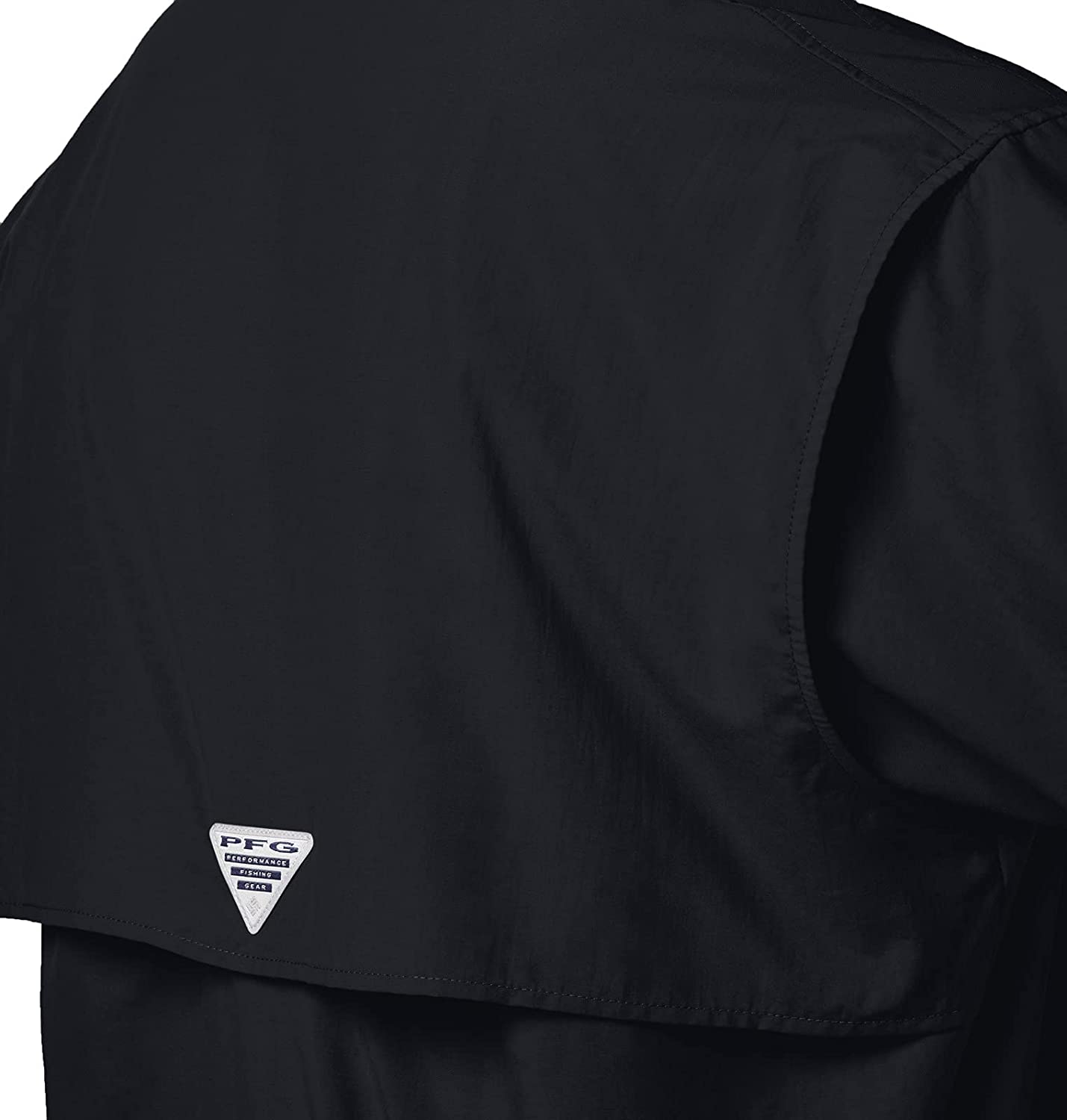Designed specifically for anglers, this lightweight nylon shirt dries fast, keeps you cool, and protects against UV rays. Mesh-lined back vents make it perfect in hot, humid weather, and tabs let you securely roll up your sleeves. A fishing-ready button-up shirt with a button-down collar. Expect Columbia's best sun protection tech that helps prevent skin damage during long outdoor events. The fabric provides UPF 50 UVA and UVB protection, while the smooth Tactel nylon taffeta fabric is lightweight and dries quickly to keep you cool. Four self-draining pockets at the chest, along with a gear loop, and rod holder keeps things handy while you work on your next lure. This Columbia short sleeve shirt comes in a range of colors and sizes. Extended sizing available. Relaxed Fit. To ensure the size you choose is right, utilize our sizing chart and the following measurement instructions: For the chest, measure at the fullest part of the chest, under the armpits and over the shoulder blades, keeping the tape measure firm and level.
