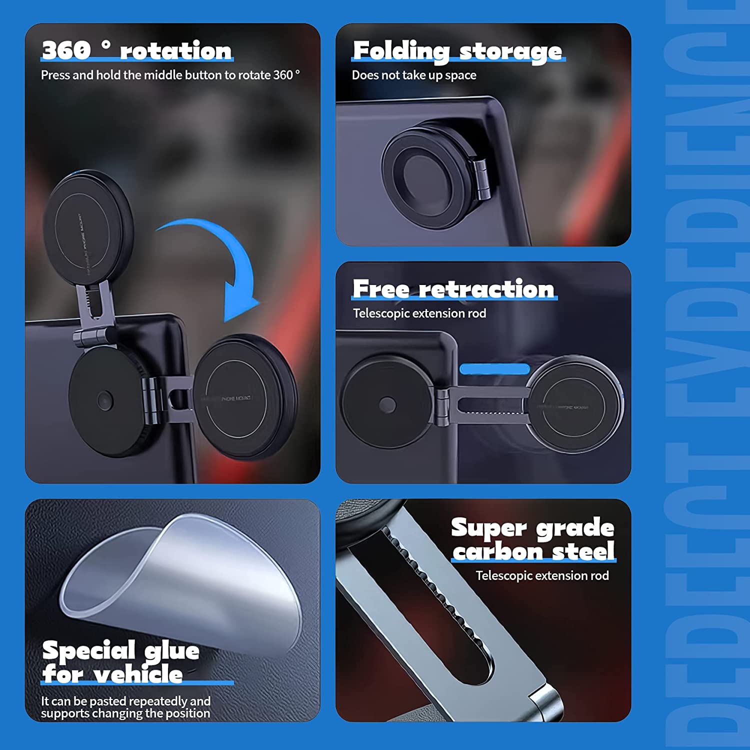 • 【Compatible With Center Screen】Foldable Car Phone Mount for Tesla 3/X/Y/S, Hide It On The Back of The Center Screen so That it is Not Visible, Magnetic Car Phone Mount Retains The Design of Tesla's Interior. It Can Also Be Mounted On The Dashboard or Windshield. (Note: This MagSafe Car Mount Does Not Have Wireless Charging!!!) .