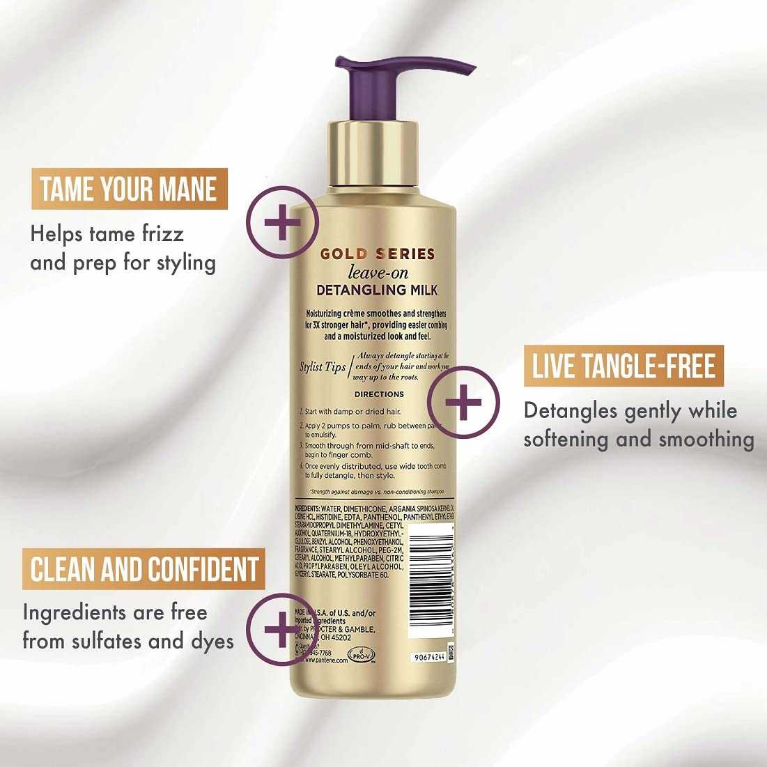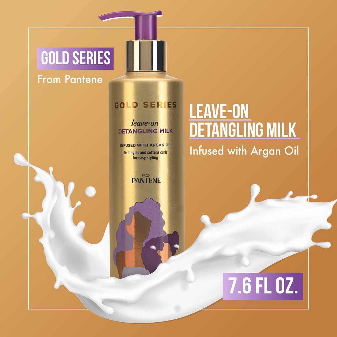 Pantene Gold Series Detangling Milk Hair Treatment for Curly Hair, Natural and Textured Hair, 7.6 Fl Oz ?? Leave-On Hair Detangler Infused with Rich Argan Oil, Dye and Sulfate Free Formula