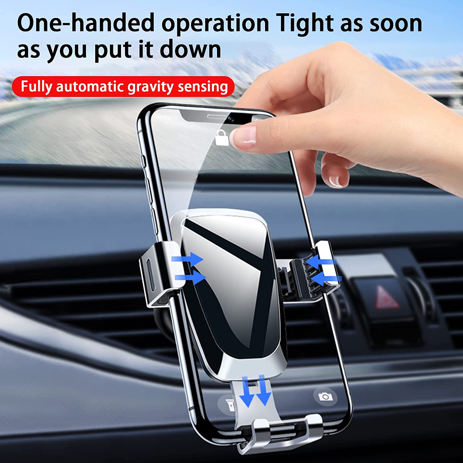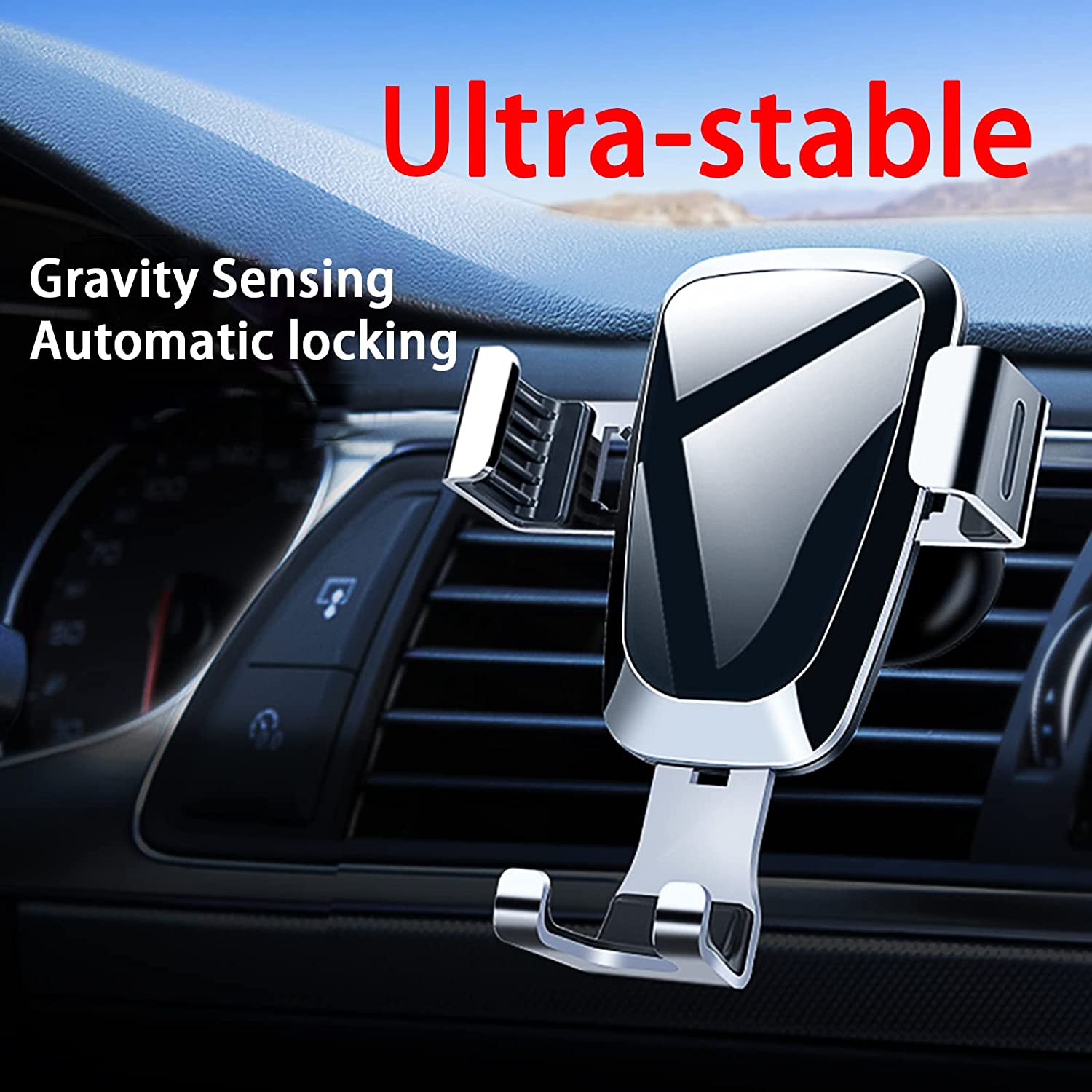 Car Phone Holder Ultra-Robust and Easy to Install Gravity Car Vent Phone Mount Hands Free Cradle Air Vent Clip Automotive for iPhone and Smartphones (Argent)