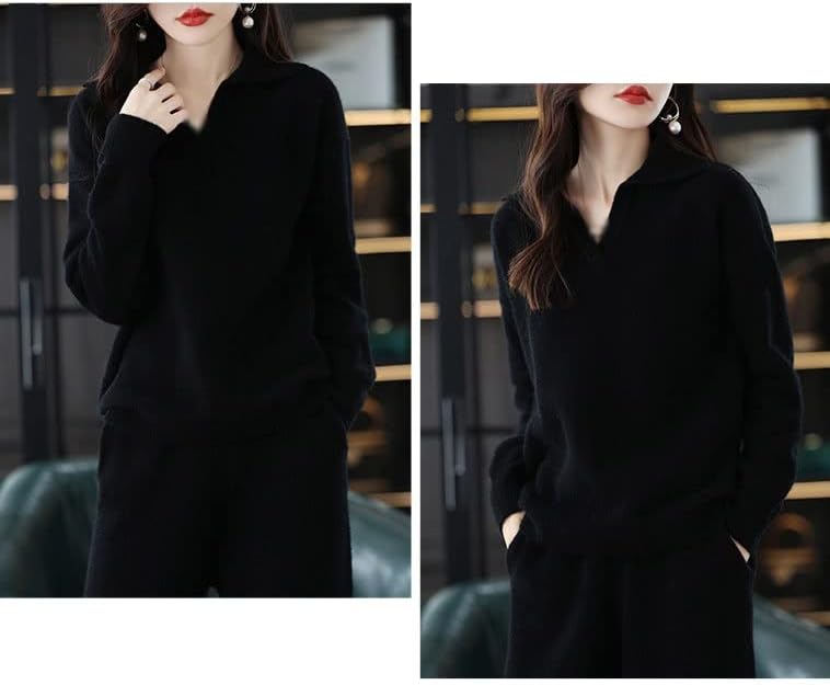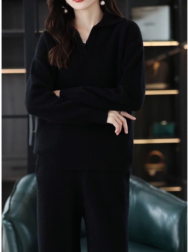 Walnut Two Pieces Cashmere Wool Suits Female Turtleneck Warm Knit Tops and Casual Pants Sets (Color : Gray, Size : 1)