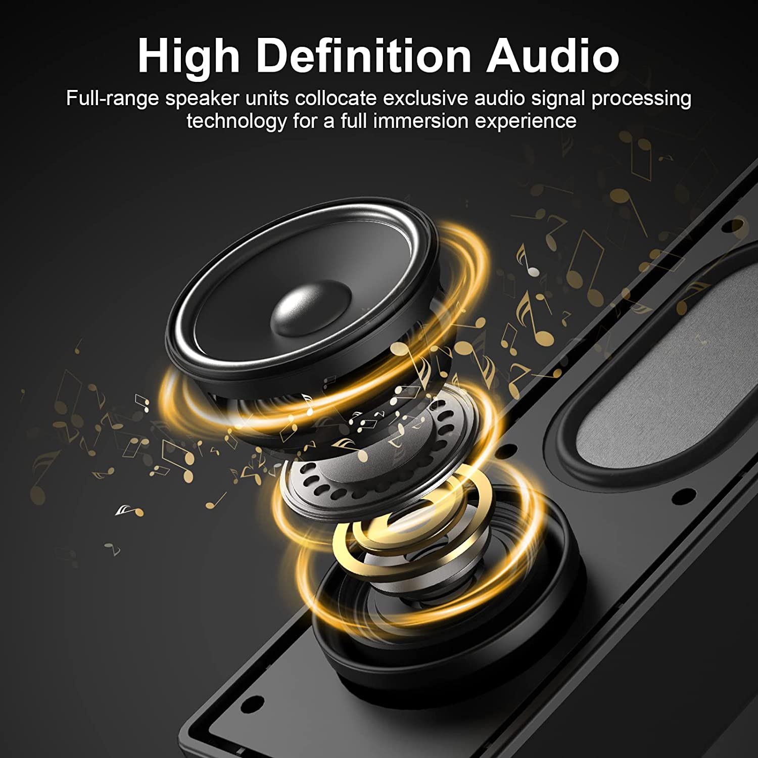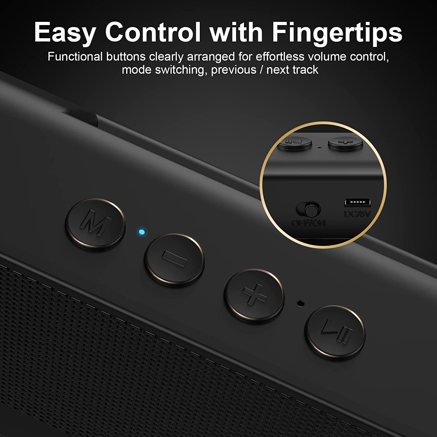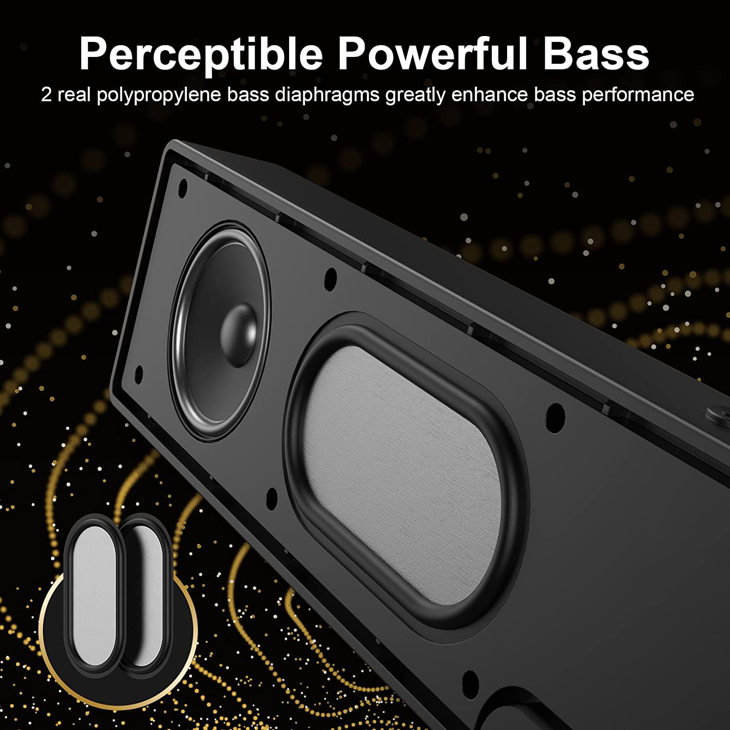 • 【Real Diaphragms for Enhanced Bass】Except for the full-range speakers, the computer sound bar is also equipped with 2 real bass diaphragms, which greatly enhance bass performance, and provide you with deep and powerful bass. You’ll be able to truly feel the difference between ours and others.