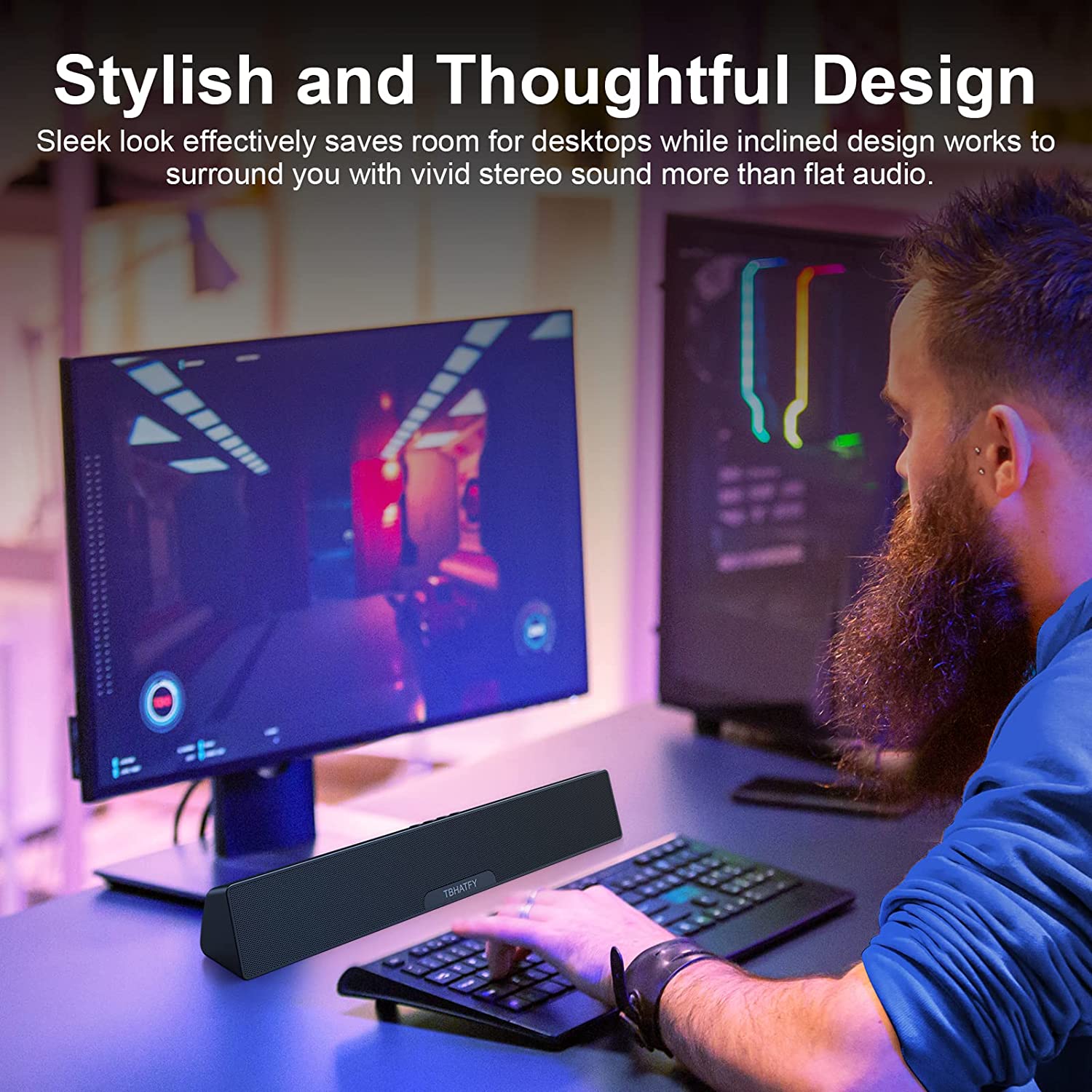 Computer Speakers, HiFi Stereo PC Speakers, USB Powered Computer Speakers for Desktop with Deep Bass, Computer Sound Bar with Bluetooth and AUX-in, for Computer, Desktop, Phones, PCs, Tablets, Laptops