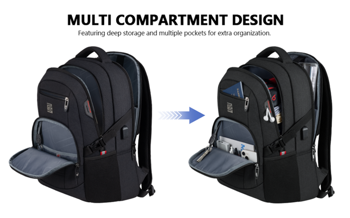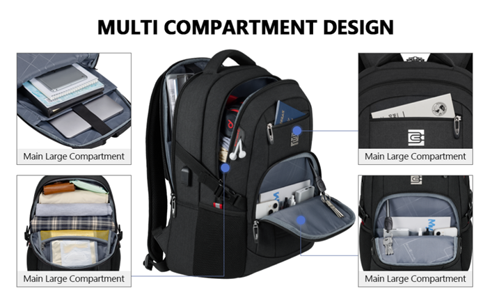 • ➤【Plenty of Space & Organized: 】: Men’s laptop backpacks with a separate laptop compartment provides you with plenty of room and holds laptops from 13 inch, up to 15.6inch. A main spacious compartment is roomy for daily necessities, tech, and travel accessories. The front compartment pocket for key fob hooks, pens, cell phones, and zippered pocket provides quick access to small items, and side mesh pockets hold water bottles and umbrellas to help you organize your items efficiently.
