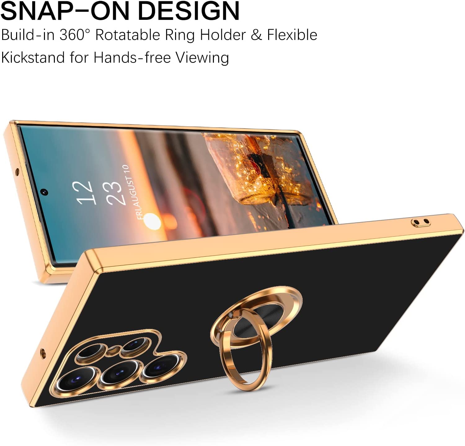 • ★【Functional Rotatable Ring & Kickstand】This s23 ultra phone case comes with a convenient adjustable sturdy ring holder which can rotate 360 degree for easy safe carrying. Built-in kickstand gives you the convenience to watch videos and movies hands-free with desired comfort and stability.