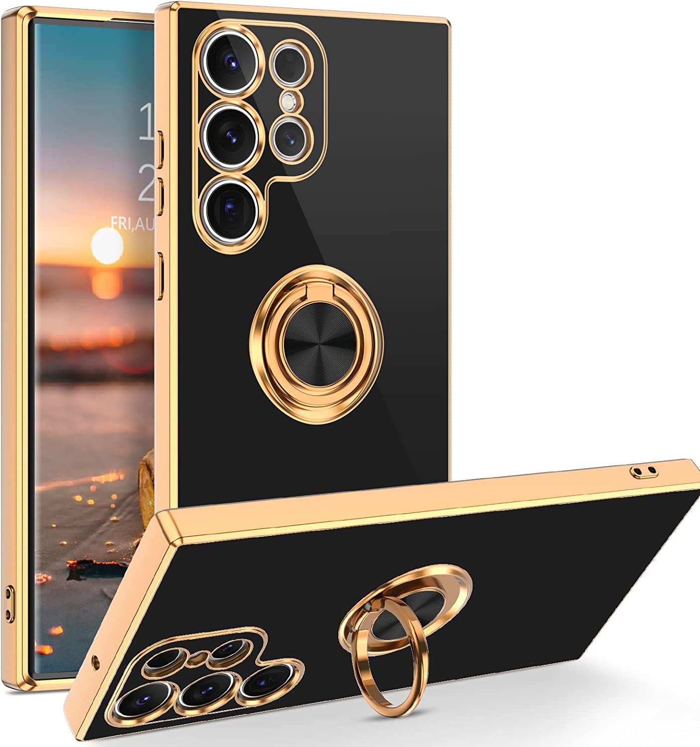 BENTOBEN Compatible with Samsung S23 Ultra Case with 360° Ring Holder, Shockproof Slim Kickstand Magnetic Support Car Mount Women Men Protective Phone Case for Samsung Galaxy S23 Ultra, Black/Gold