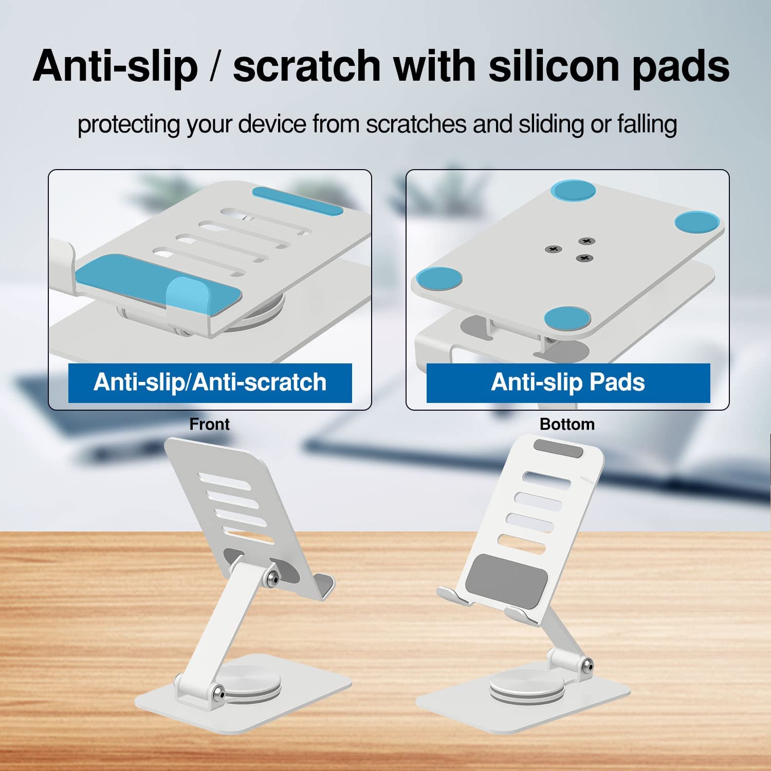 • [Multiple Angle Adjustment] : The height and angle of this 360 rotation phone stand can be adjusted, this foldable phone stand provides you comfortable view and reduce neck & back strain
