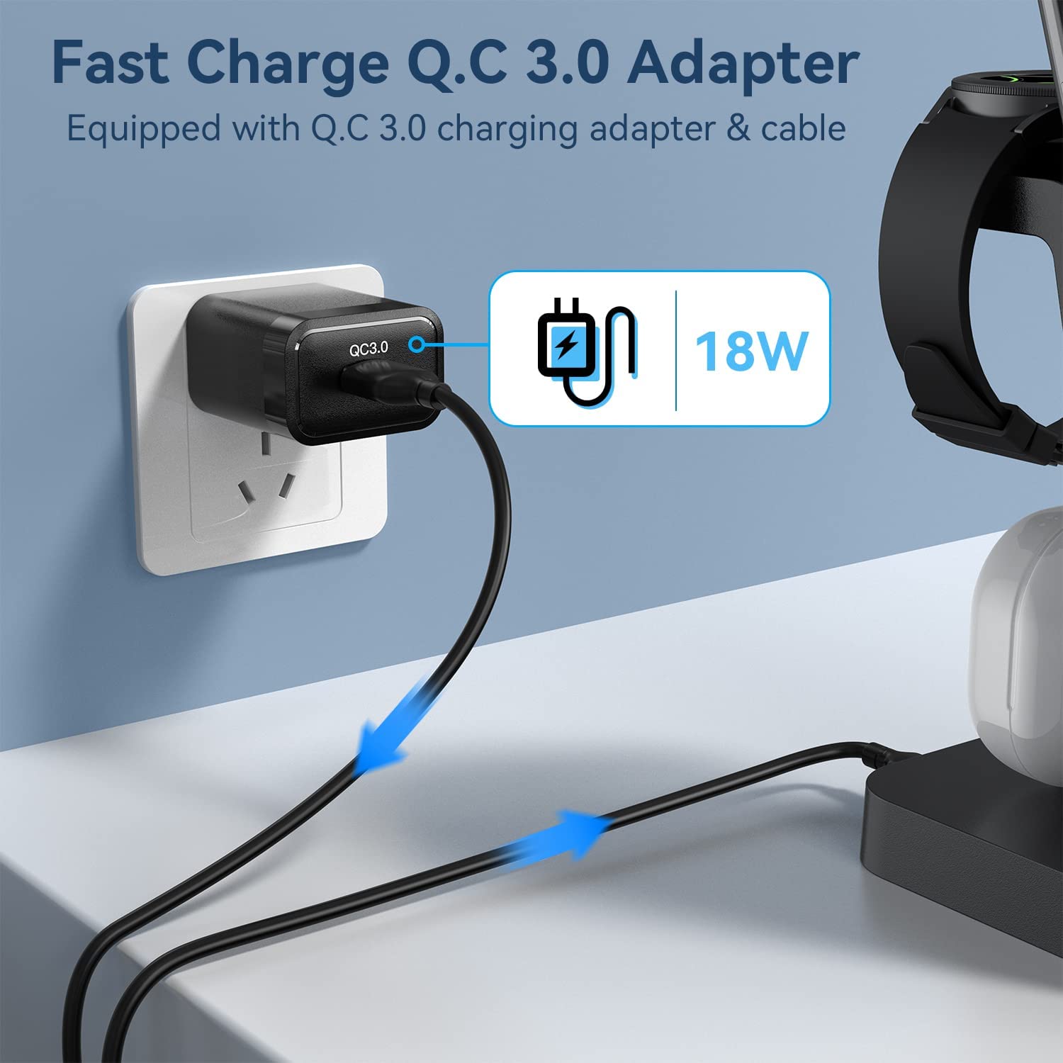 • 【Safety Fast Charging】Our 3 in 1 charging station for Samsung is equipped with FCC safety certified 18W adapter and type-c charging cable, enable fully charge your smart device in just 2 to 3 hours.The charging dock of charging station adopts intelligent protection technology, which provides temperature control and overcurrent protection to ensure safe and fast charging.