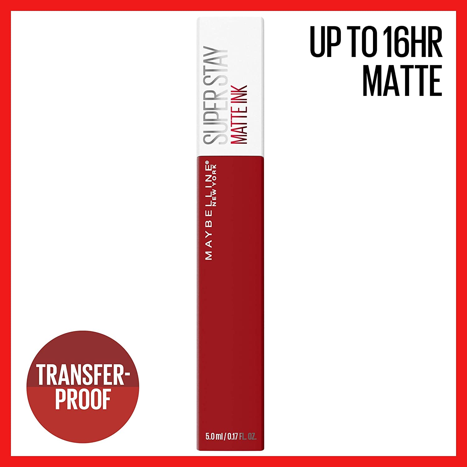 • Perfectly Matte: Achieving a flawless, color-intense matte finish is just a swipe away with Maybelline Super Stay Matte Ink liquid matte lipstick. Get up to 16 hours of wear with this liquid lipstick in shade Exhilarator for a true ruby lip color