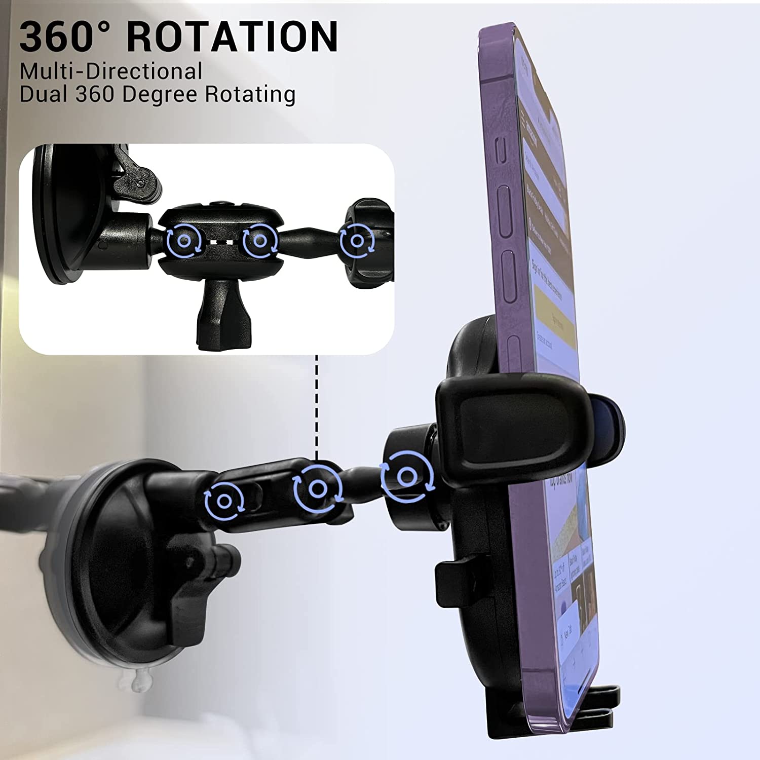 Karmus Shower Phone Holder, 360°Rotating Suction Cup Phone Mount Stand for Bathroom/Mirror/Kitchen/Wall/Car Compatible with All Phones, Great Gift for TikTok/YouTube/Vlog Video/Make Up/Airplane Travel