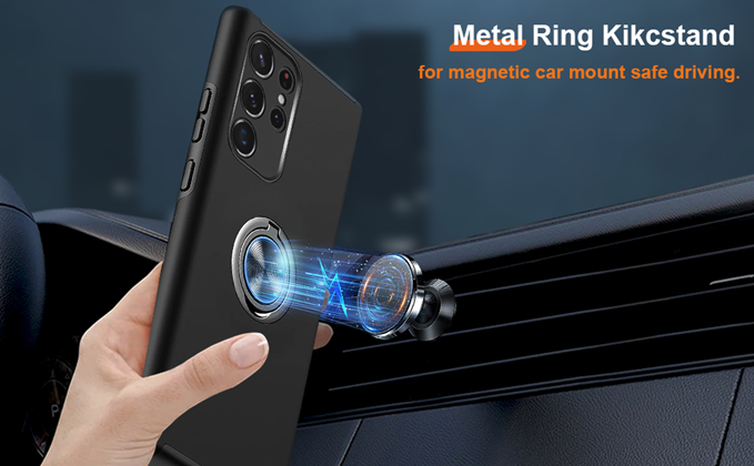• [2023 Upgraded Kickstand]: Humanized design, 360°horizontal + 120°vertical rotation buit-in stand can lay flat on the back instead of having a large bulge where the ring and magnet are as some cases tend to do. Perfect for hands-free movie viewing. Metal ring kickstand also works greatly with magnetic car mount.
