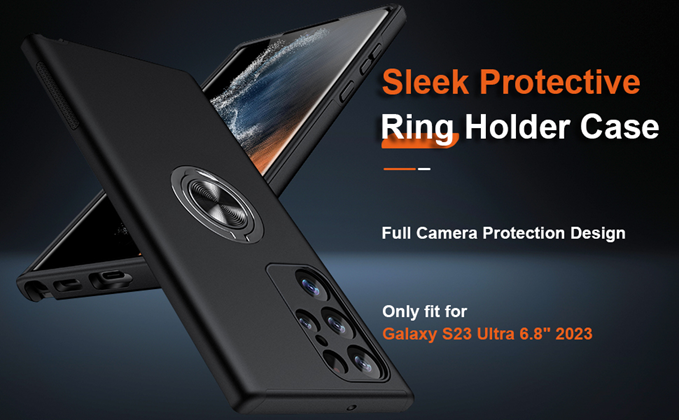 iDLike for Samsung Galaxy S23 Ultra Case, Military Grade Drop Test Shockproof Phone Case Cover with [Full Camera Lens Protection] [Invisible Ring Holder Kickstand] [Support Magnetic Car Mount],Black