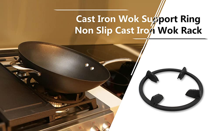 - ➥Cast Iron wok support ring for gas stove trivets. wok ring for kitchenaid gas stove to stabilize when cooking, The cast iron wok ring has perfect grooves on the bottom, so it doesn't slide. The gas stove is safely removed from the wok ring to control the heat range. It can also perfectly holding a round bottom frying pan. The humanized designs meet the needs of different families.