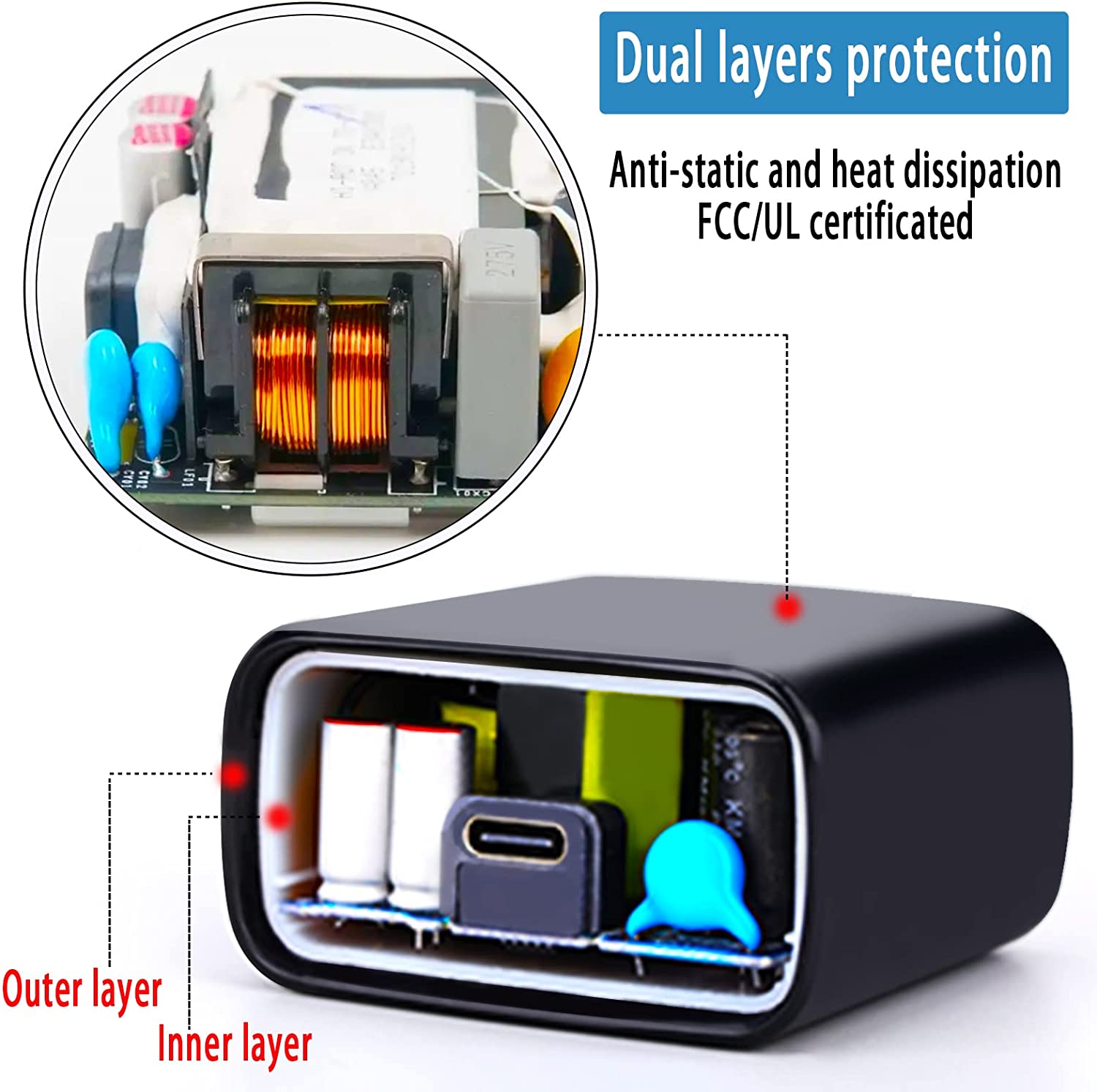 • ⚡ Double Layers Protection : This samsung 45w USB-C charger has an extra inner protective case which can not only protect the PCB'A better than usual ones but has the function of doing anti-static and heat dissipation. And this samsung 45w charger has passed UL test.