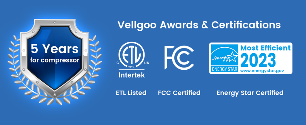 - WHY VELLGOO? Adhere to the pursuit of excellent quality, use high-quality environmentally friendly materials, adopt core rotary compression technology, and pass the Energy Star certification, FCC certification and ETL certification. and we offer lifetime expert tech support. Your safety is fully guaranteed
