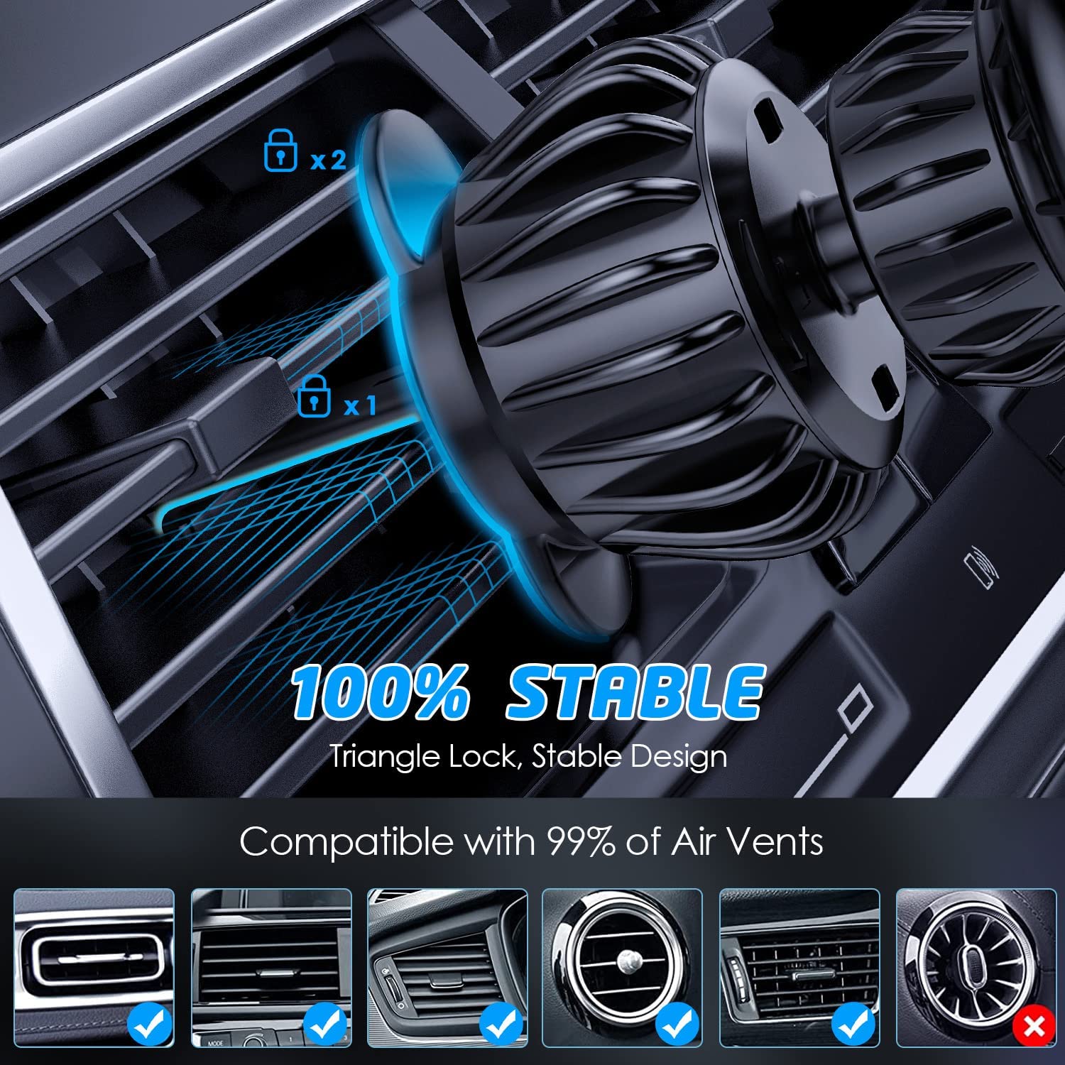 Compact Design: This compatible MagSafe phone mount only takes up a little space and won't block your air vent yet very reliable in securely holding your phone. Compatible with horizontal and vertical vents.