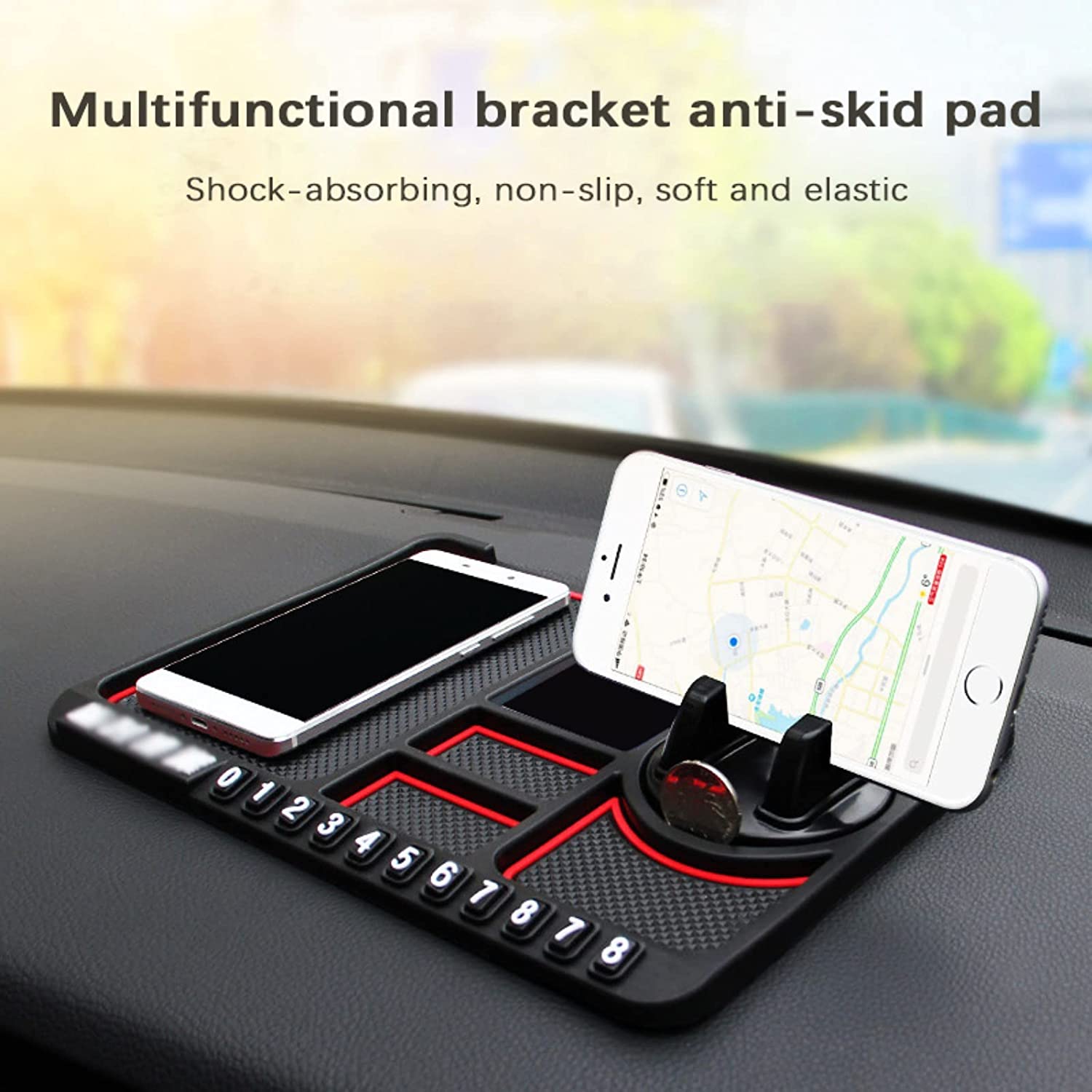 - 【Non-Slip Phone Pad for 4-in-1 Car】Non slip phone pad 4 in 1 for car,no complicated installation procedures,no magnets, screws or complicated suction cups,just put on and use. Non-Slip phone pad for 4-in-1 car can be used as a mobile phone holder mount,non slip multifunctional phone pad for car can display number plate, non-slip phone pad for car dashboard has a storage function,can place items on the dashboard of car,RV,boat and more.