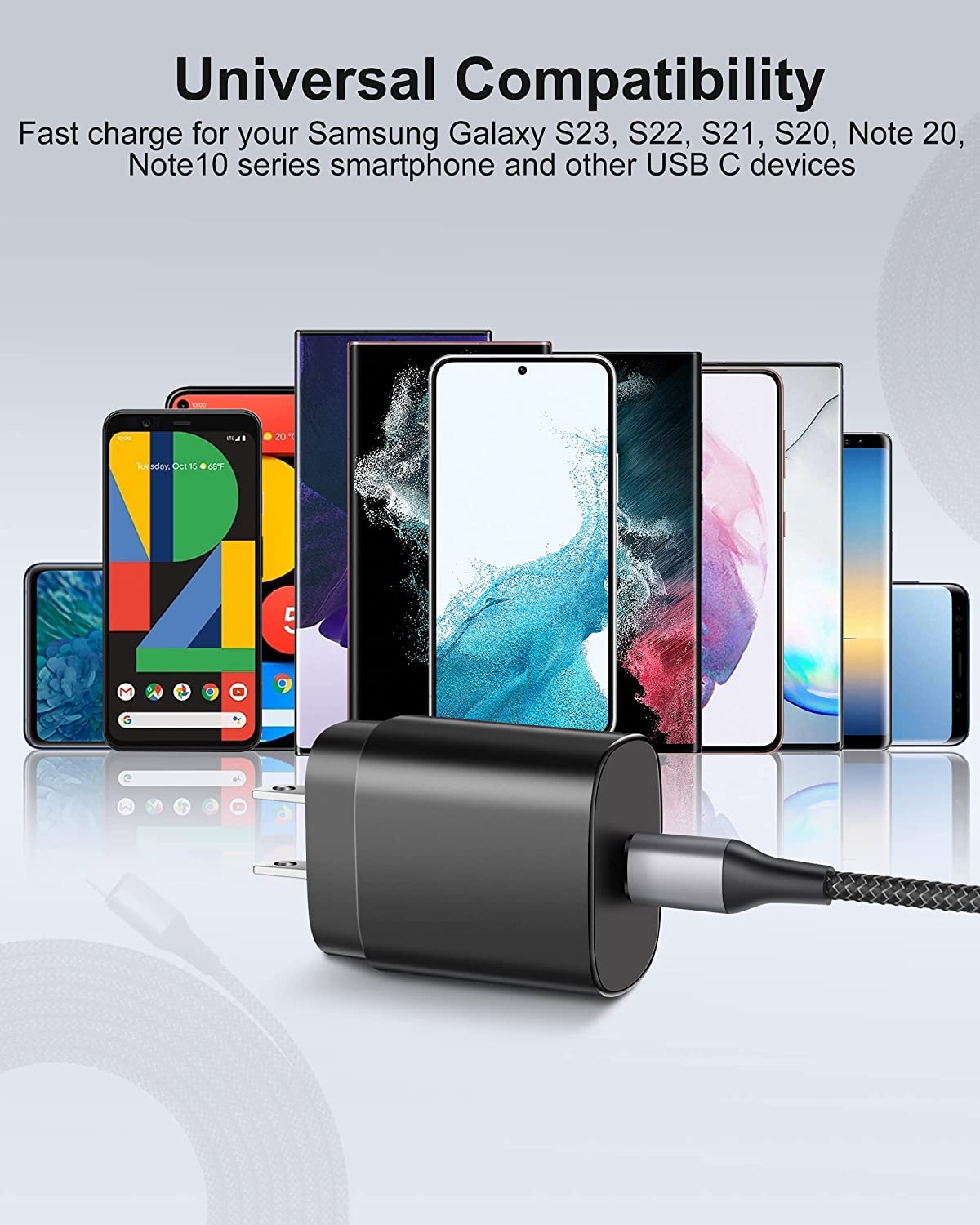 Super Fast Charger Type C, 2Pack 25W USB C Wall Charger Block with 3FT 6FT 10FT Braided Long USB-C to USB C Cable Fast Charging for Samsung Galaxy S23/S23 Ultra/S23+/S22/S22 Ultra/S21/S21+/S20/FE 5G