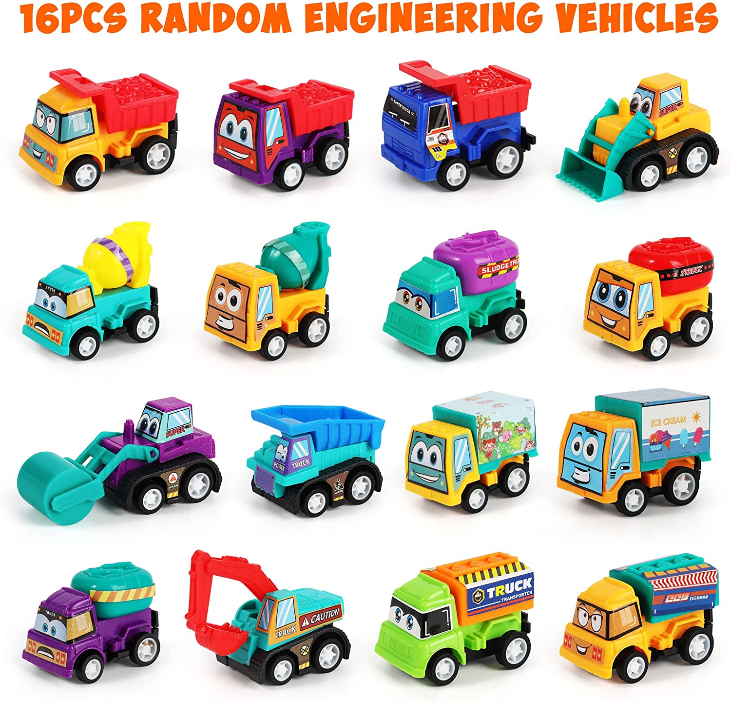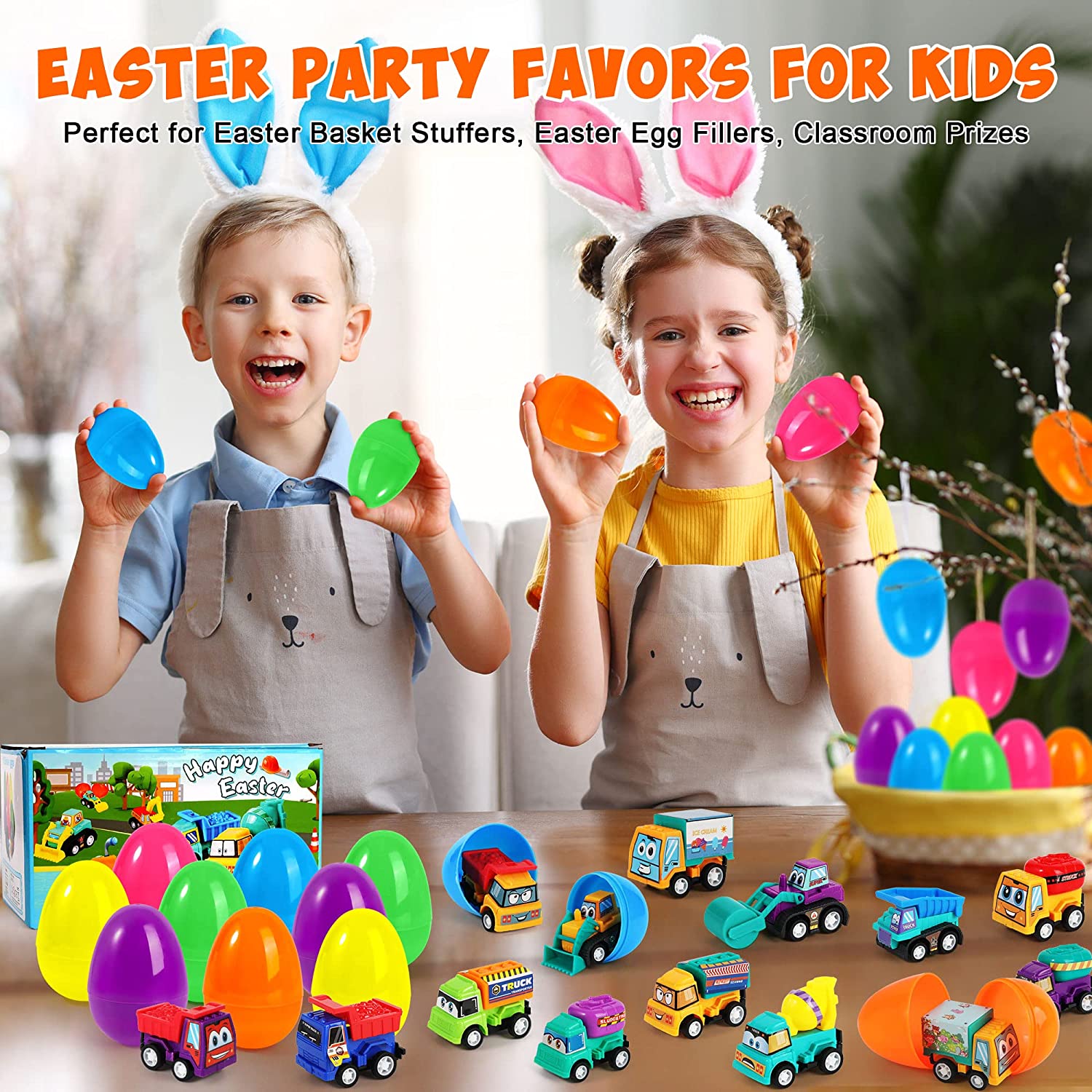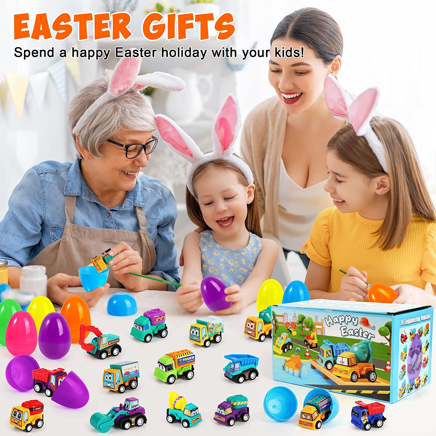 16 Prefilled Easter Eggs with Toys Inside - Prefilled Easter Eggs with Pull-Back Engineering Car Vehicles Toys for Kids Easter Gifts, Easter Basket Stuffers,Easter Egg Hunt Party Favors