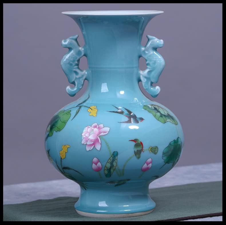 ZSEDP Jingdezhen Ceramic Antique Enamel Flower Vase Flower Arrangement Decoration Chinese Style Living Room