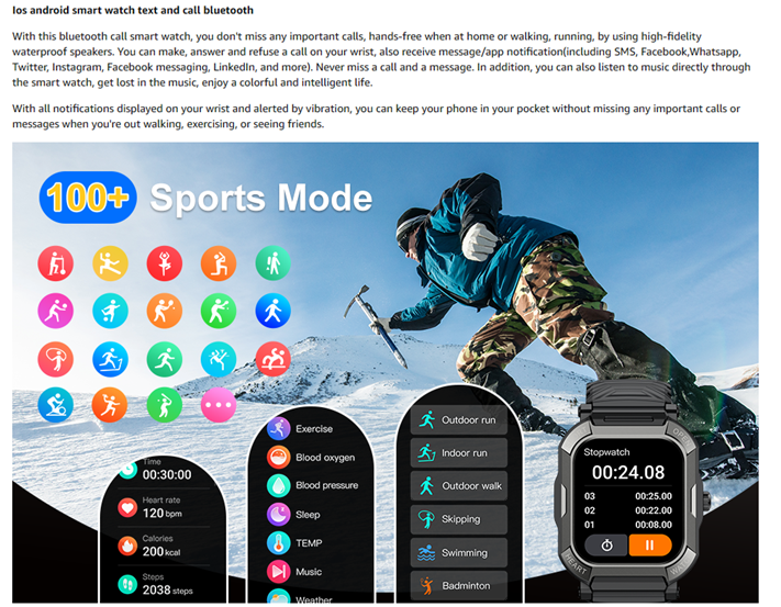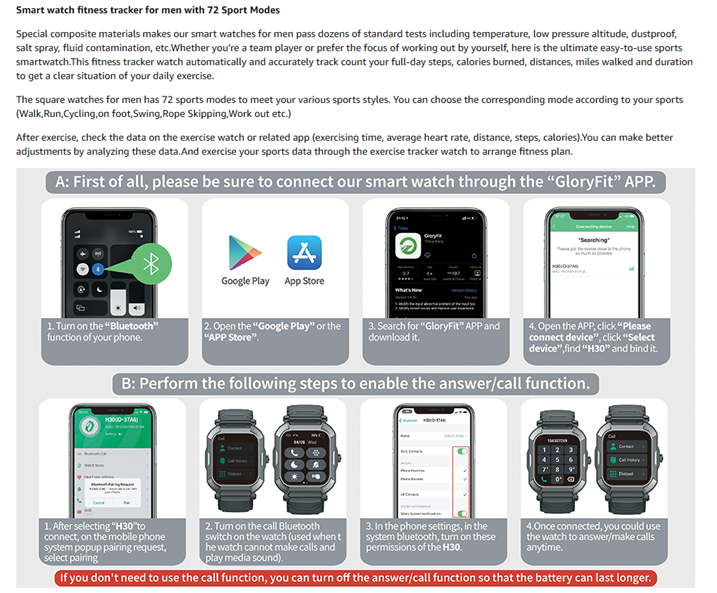 - Exercise watches for men & 72 Sport Mode - Running watches for men accurate track step,distance,calorie.Calorie counter watch support 72 sport mode:walk,run,swim,yoga,hiking watch etc to give you more detailed insights into whole day activity.Water resistant smart watches is IP68 waterproof,you can wear it when swim and record various data.Smart watch swimming is best choice for fitness enthusiast.Pedometer watch for men help you exercise scientifically