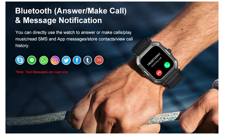 - Smart watch with text and call - Health watches for men is equipped with a high-quality speaker, can directly use the work watches for men to answer make calls/play music/read messages/store contacts/view call history. You can get notifications of calls, SMS and SNS messages, Whatsapp, text, facebook etc.You will never miss any calls & message during meetings or workout.Smart watch for android phones text and call equipped with 270 mAh large capacity long battery life and can be used 7-15 day