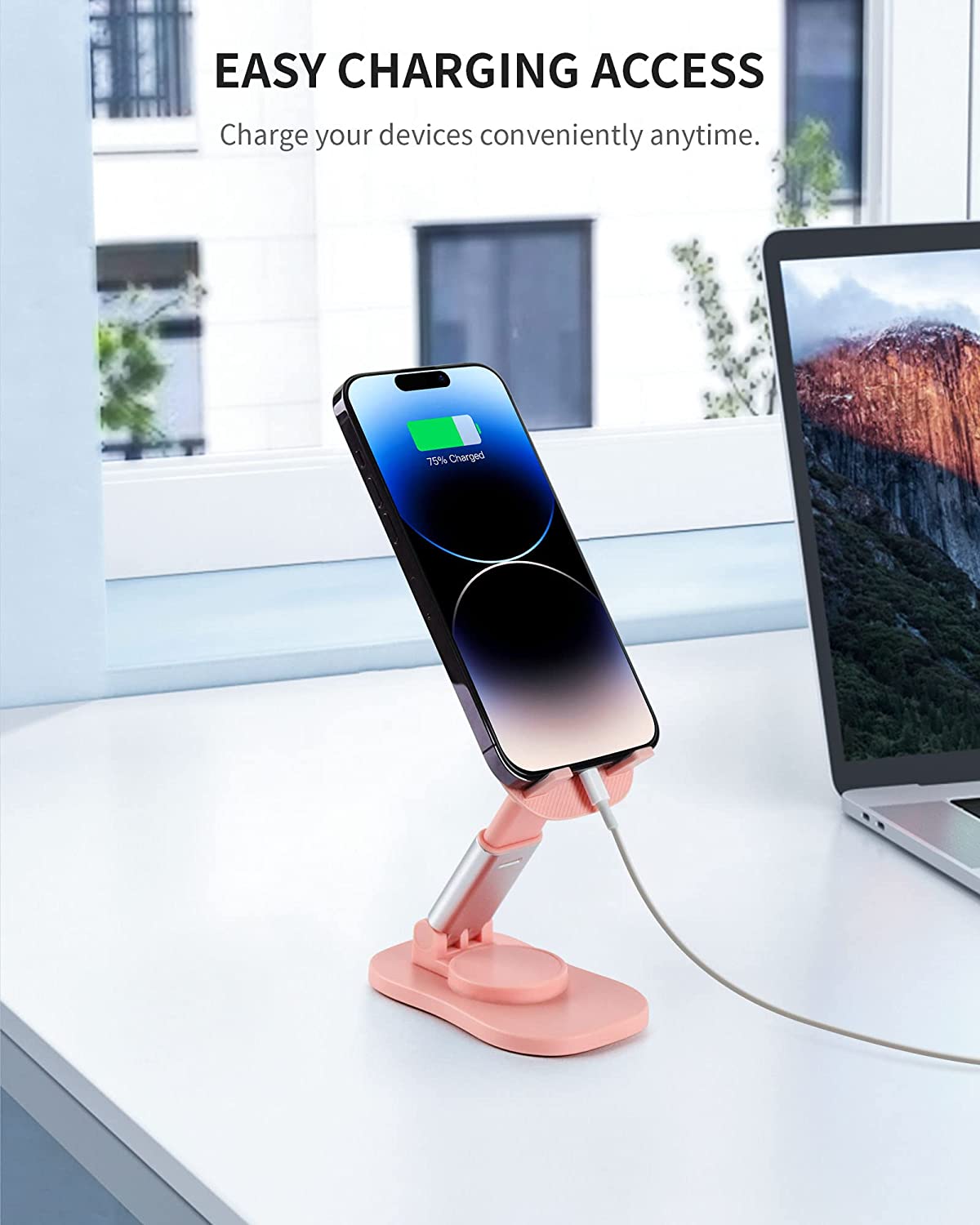 Having this desktop phone holder to prop up your phone and adjust it to ideal position, you can free your hands while watching videos, making phone call, using Facetime and viewing recipes. Play a good role in your office, kitchen, nightstand, dining table.