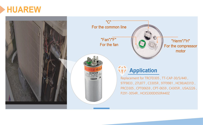 ▲Replacement for TRCFD305 , TT-CAP-30/5/440 , 97F9833 , 27L877 , C3305R , 97F9981 , HC98JA031D , PRCD305 , CPT00659 , CPT-0659 , C4305R , USA2226 , P291-3054R , HCKS300D050R440Z.