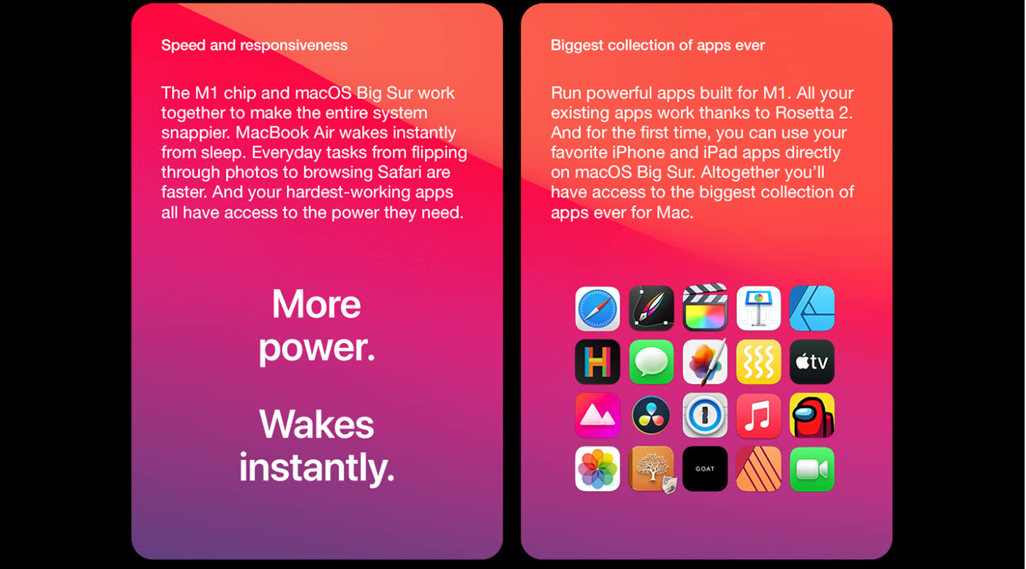 • Simply Compatible – All your existing apps work, including Adobe Creative Cloud, Microsoft 365, and Google Drive. Plus you can use your favorite iPhone and iPad apps directly on macOS. Altogether you’ll have access to the biggest collection of apps ever for Mac. All available on the App Store.