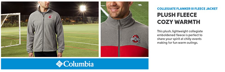 A soft fleece layer is a must for any fall, winter, or spring wardrobe—even more so for cross-campus walks, that’s why our collegiate version of the Columbia Flanker III Fleece Jacket was made. This is a soft, cold weather ready staple, and everyday style piece in support of your alma-mater. You're bound to be warm and worry-free in this fleece jacket crafted of our super-soft polyester filament fleece. It's the perfect layering piece and first line of defense to combat cold outings. When high activity is a factor, a classic fit allows for comfortable movement that you'll appreciate. Zippered side pockets keep hands and small items secure and warm. An added bonus is the warm collar that's flexible enough to wear up or down – depending on your desired level of toastiness. Columbia offers this collegiate jacket with multiple college logos and in a variety of sizes. To ensure the size you choose is right, utilize our sizing chart and the following measurement instructions: For the sleeves, start at the center back of your neck and measure across the shoulder and down to the sleeve. If you come up with a partial number, round up to the next even number. For the chest, measure at the fullest part of the chest, under the armpits and over the shoulder blades, keeping the tape measure firm and level.