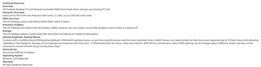 - ? PROCESSOR and STORAGE: Configured with Intel Core i5-4570 Quad Core Processor 3.20 GHz, so you can expect reliable and consistent performance to ensure an exceptional PC experience. 8 GB DDR3 RAM memory to smoothly run multiple applications and browser tabs all at once. Upgraded with HAJAAN 256 GB SSD storage space to store apps, photos, music, and movies.