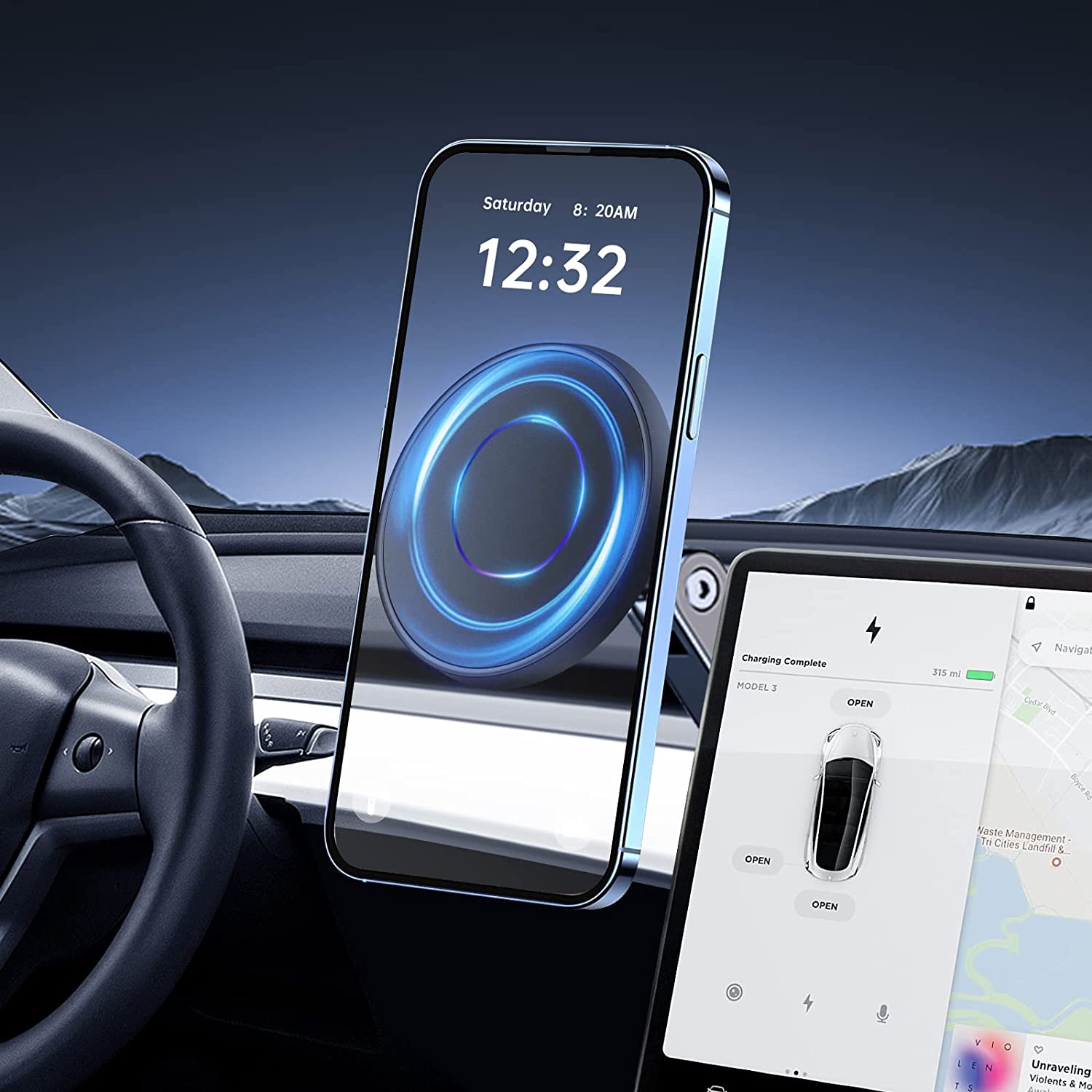 Mungudes Tesla Phone Mount, Powerful Magnetic Compatible With Magsafe Car Phone Mount for Tesla Model 3 Model Y, Tesla Phone Holder Fits All Phones, Tesla Model 3 Accessories Tesla Model Y Accessories