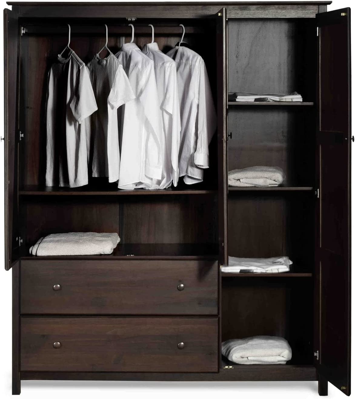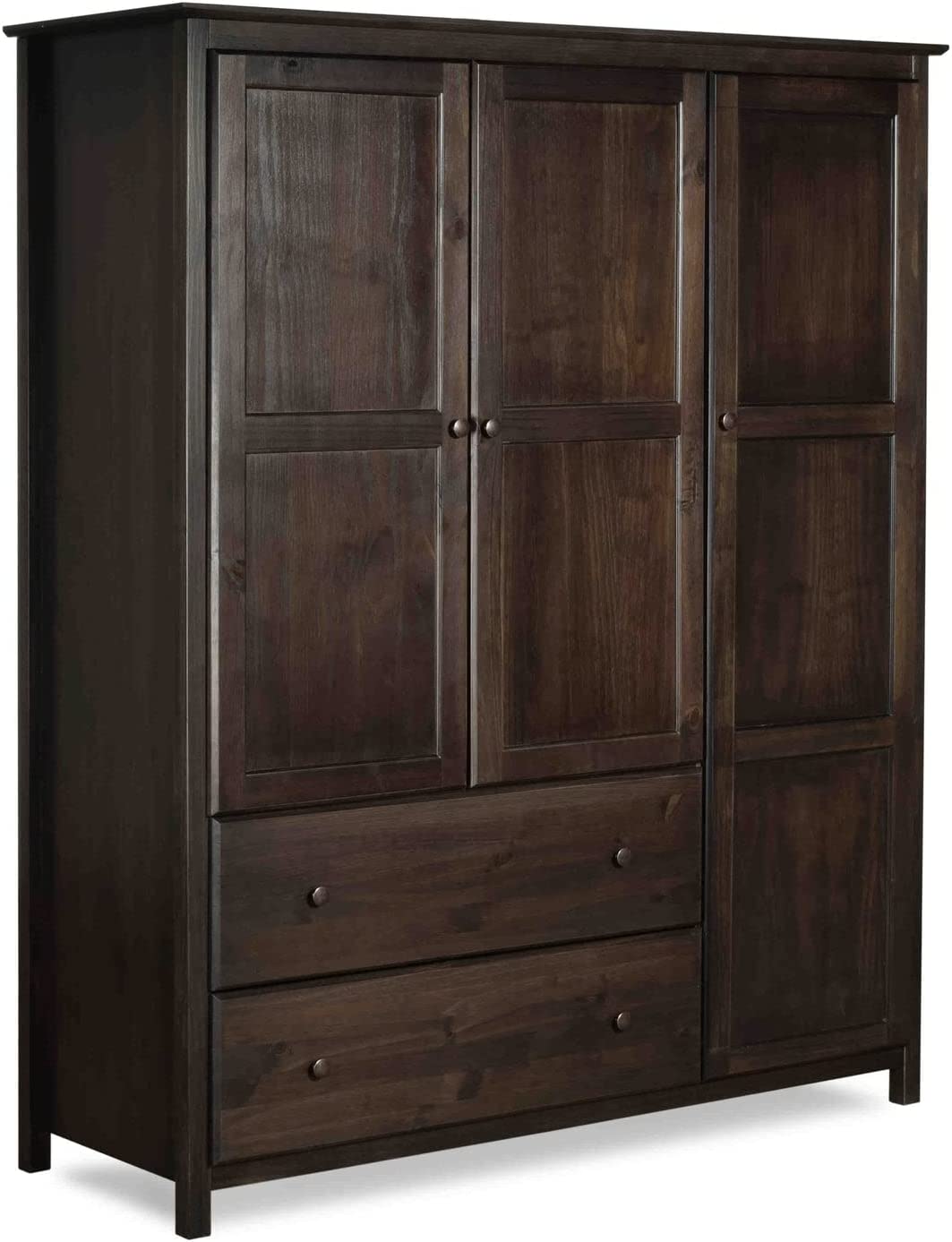 Grain Wood Furniture Shaker 3-Door Wardrobe, Expresso