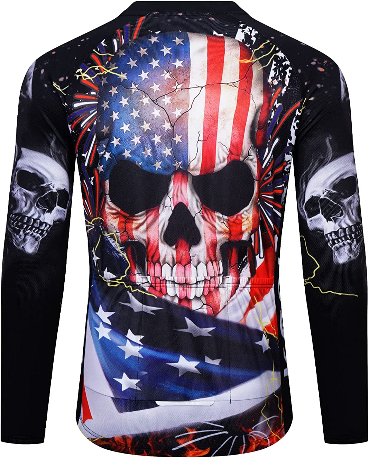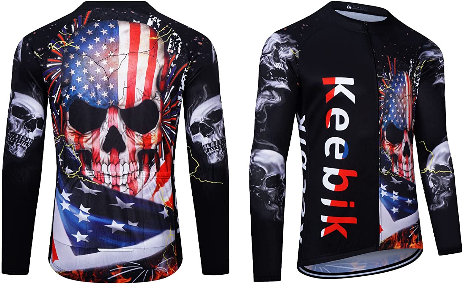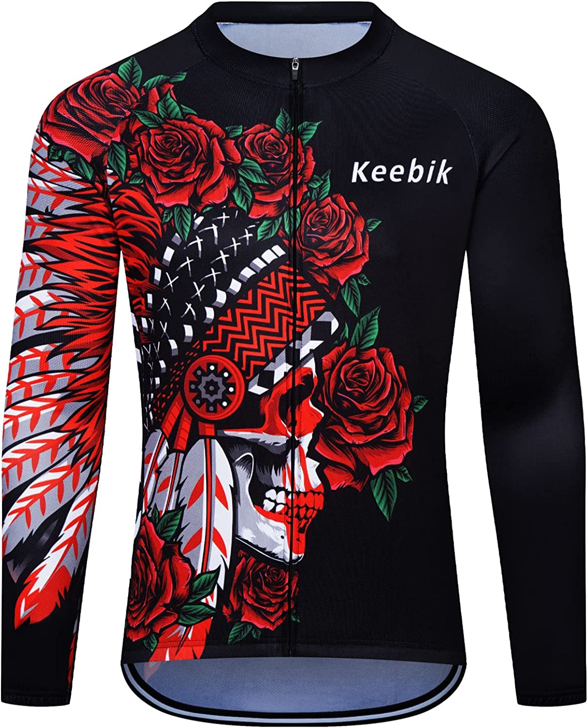 Keebik Men's Cycling Tops Bike Clothing Long Sleeve Biking Shirts Full Zipper Bicycle Jacket with Pockets