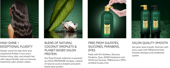 Inspired by salon protein waters for high shine and exceptional fluidity, this smoothing silicone-free conditioner for hair helps you achieve silky smooth hair with natural fluidity and shine. Infused with Niacinamide and powered by COCO-PROTEINIZE complex with natural coconut droplets to hydrate each strand, and plant-based salon protein to dive deep into the hair fibers, this hair conditioner provides smooth, detangled, high-shine hair. How to use: Prep your hair with our Pro-Infusion Fluid Smooth Shampoo and Conditioner. Apply TRESemmé Pro-Infusion Fluid Smooth Shampoo to wet hair, gently massaging your scalp and roots with fingertips to work into a lather. Lightly squeeze the shampoo from roots to ends and rinse thoroughly. Finish with TRESemmé Pro-Infusion Fluid Smooth Conditioner and for an extra boost, prep hair with the TRESemmé Pro-Infusion Fluid Smooth Tonic Spray to start your style. Every choice we make at TRESemmé, from the values we promote—such as not testing on animals and being PETA-approved—to the carefully selected ingredients we use, are made to give you professional salon quality haircare products you can trust. Because 70 years on, we believe in the power of style. So tell your story, make your mark – and achieve your aspirations with confidence.
