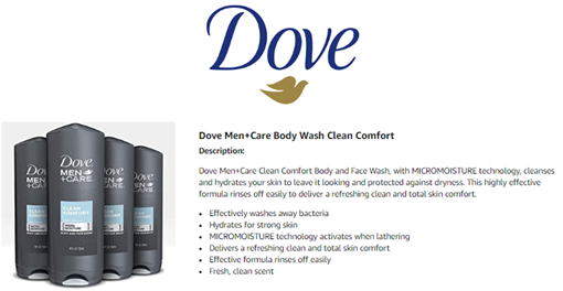 To start the day on a fresh note, add Dove Men+Care Clean Comfort Body and Face Wash to your shower routine. This crisp, refreshing body men's body wash with MICROMOISTURE technology helps keep skin hydrated, healthy looking and strong, and is clinically proven to fight skin dryness better than regular men's body wash. The highly effective cleansing formula rinses off easily to deliver a refreshing clean and total skin comfort, and this #1 Dermatologist recommended brand body wash can be used both as a body wash and a face wash. Delivering total skin comfort, this men's body wash rinses away cleanly without leaving any residue behind so you get a refreshing clean. Uniquely formulated for men with MicroMoisture technology that activates when lathering, Dove Men+Care Clean Comfort Body Wash helps to lock in your skin's natural moisture and leave it feeling fresh and hydrated. This shower gel for men is noncomedogenic, hypoallergenic, and gentle enough to use on your face. The formula leaves you with a clean body and a crisp, refreshing scent. Now you can start your day with skin that feels healthy, protected, clean, and refreshed with this powerful and effective body wash for men.