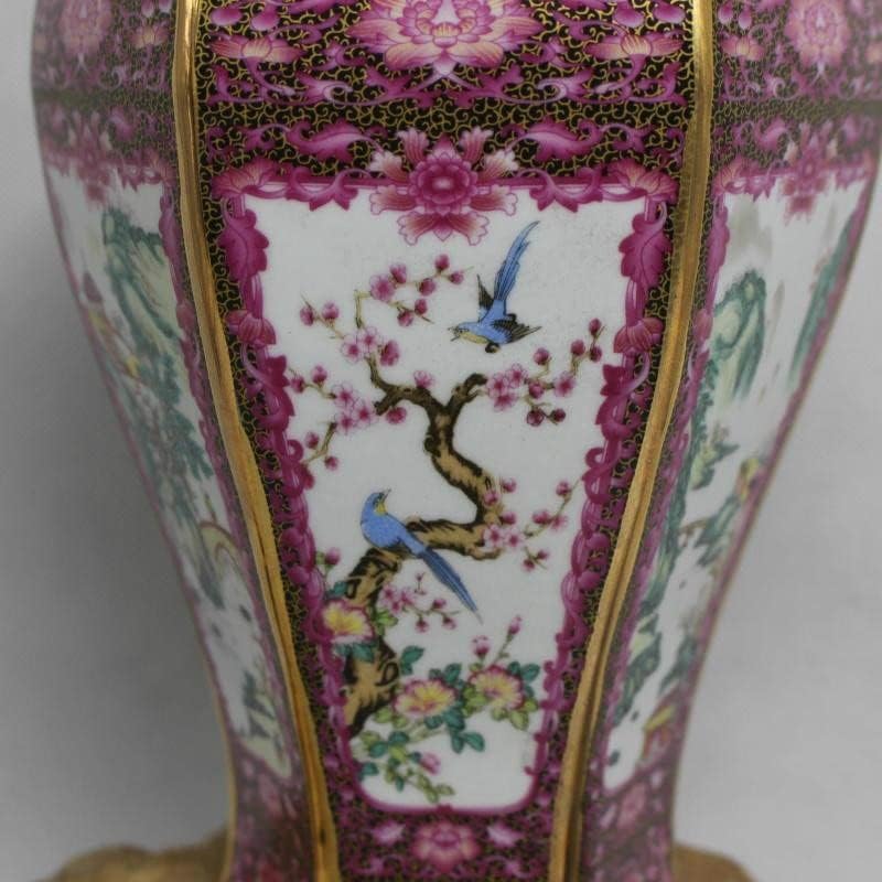 ZSEDP Jingdezhen Ceramic Antique Enamel Flower Vase Flower Arrangement Decoration Chinese Style Living Room